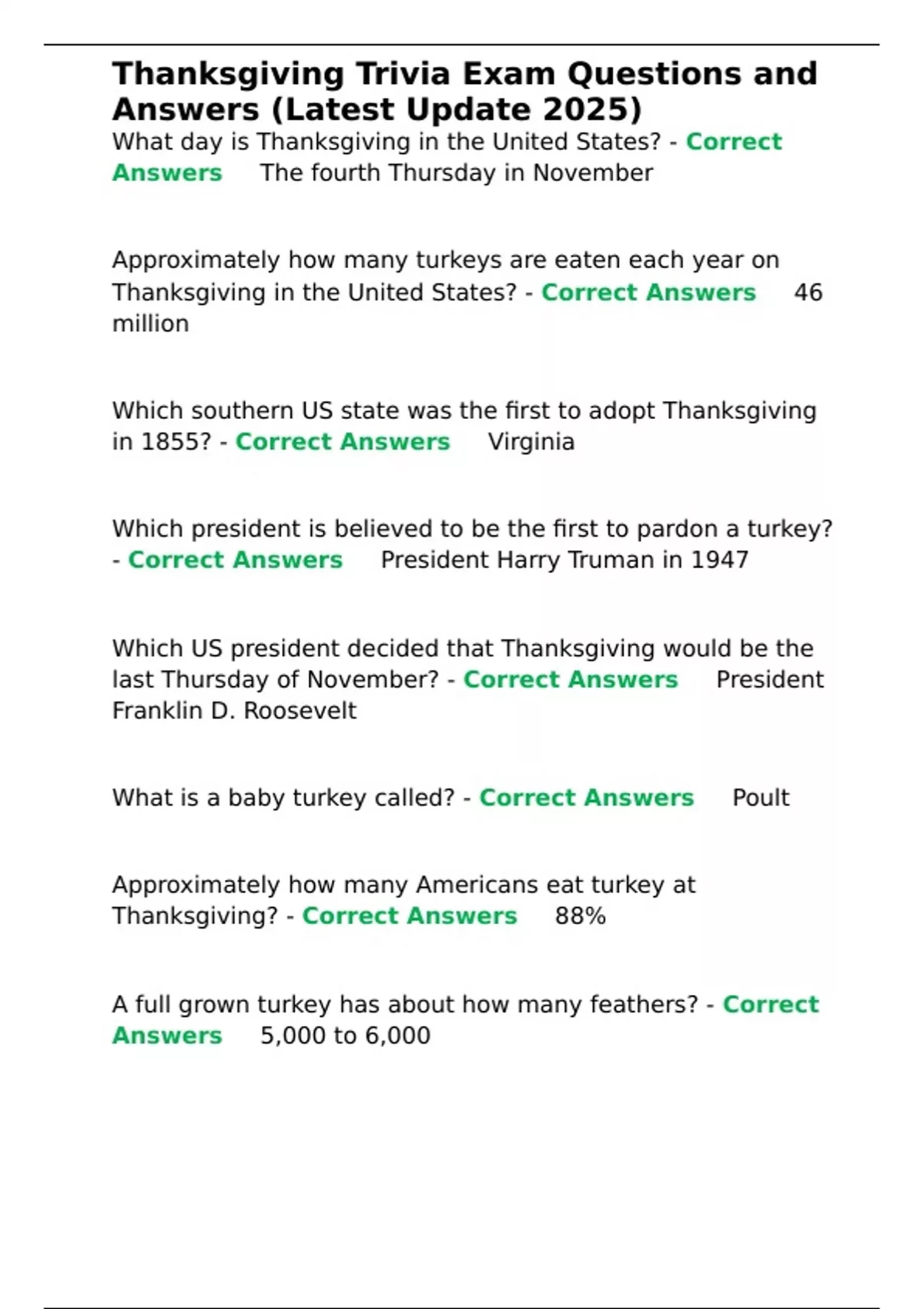 Thanksgiving in the United States? - Correct Answers ✅46