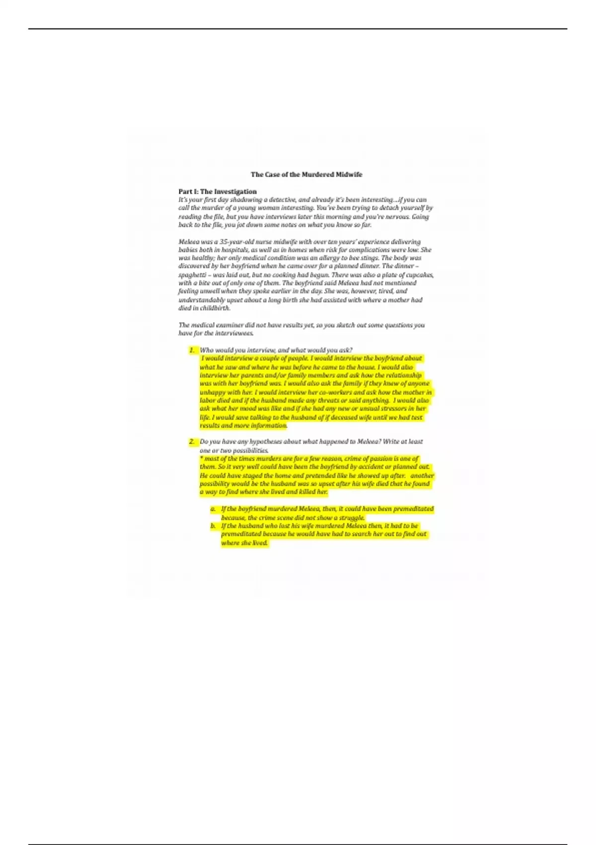 b. If the husband who lost his wife murdered Meleea then, it had to be