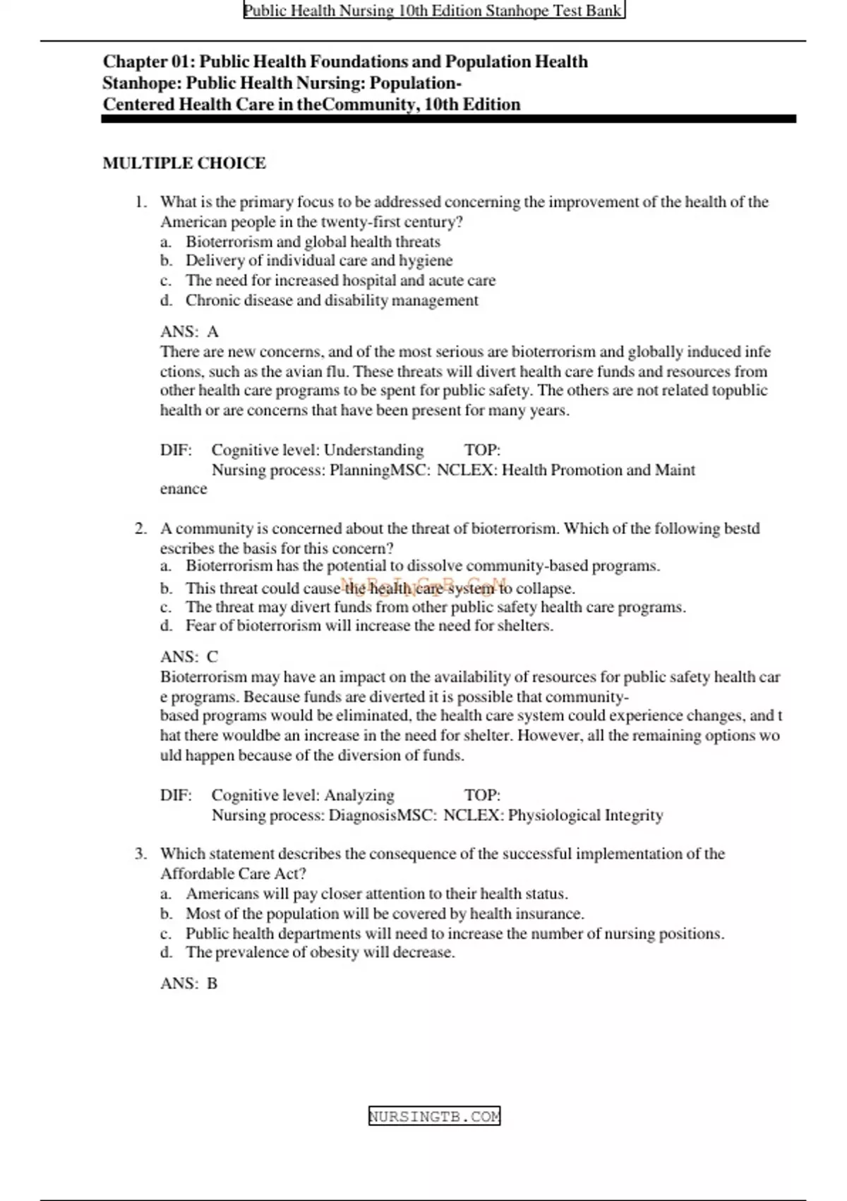 , PublicgHealthgNursingg10thgEditiongStanhopegTestgBank