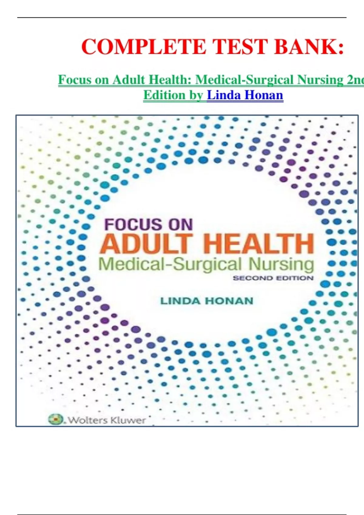 COMPLETE TEST BANK: Focus on Adult Health: Medical-Surgical Nursing 2nd Edition by Linda Honan Latest Update. Latest Update.