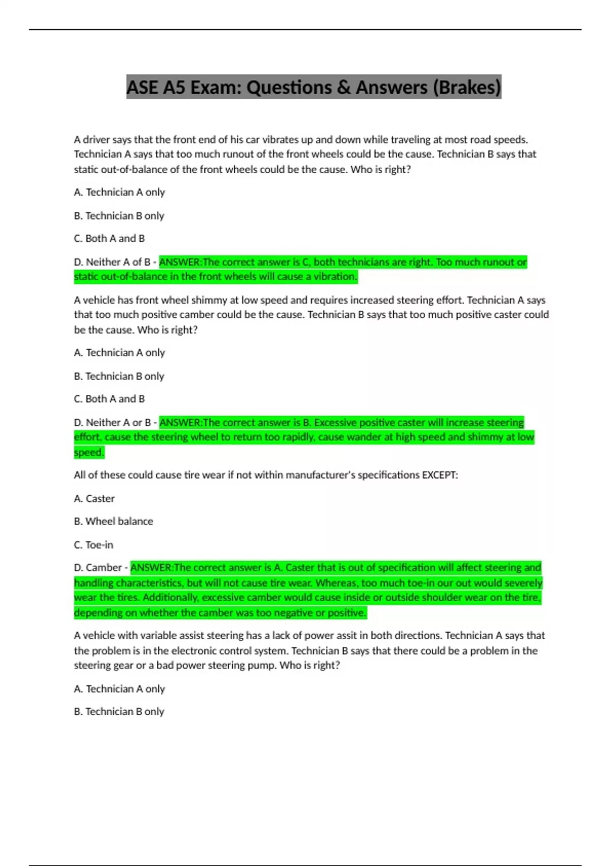 D. Neither A or B - ANSWER:The correct answer is B. Excessive positive caster will increase steering