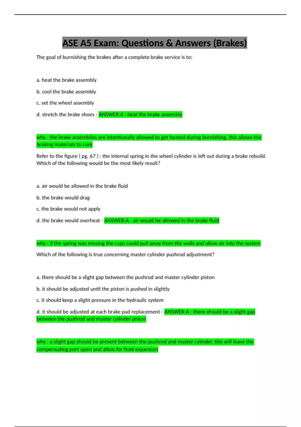 d. stretch the brake shoes - ANSWER:A : heat the brake assembly