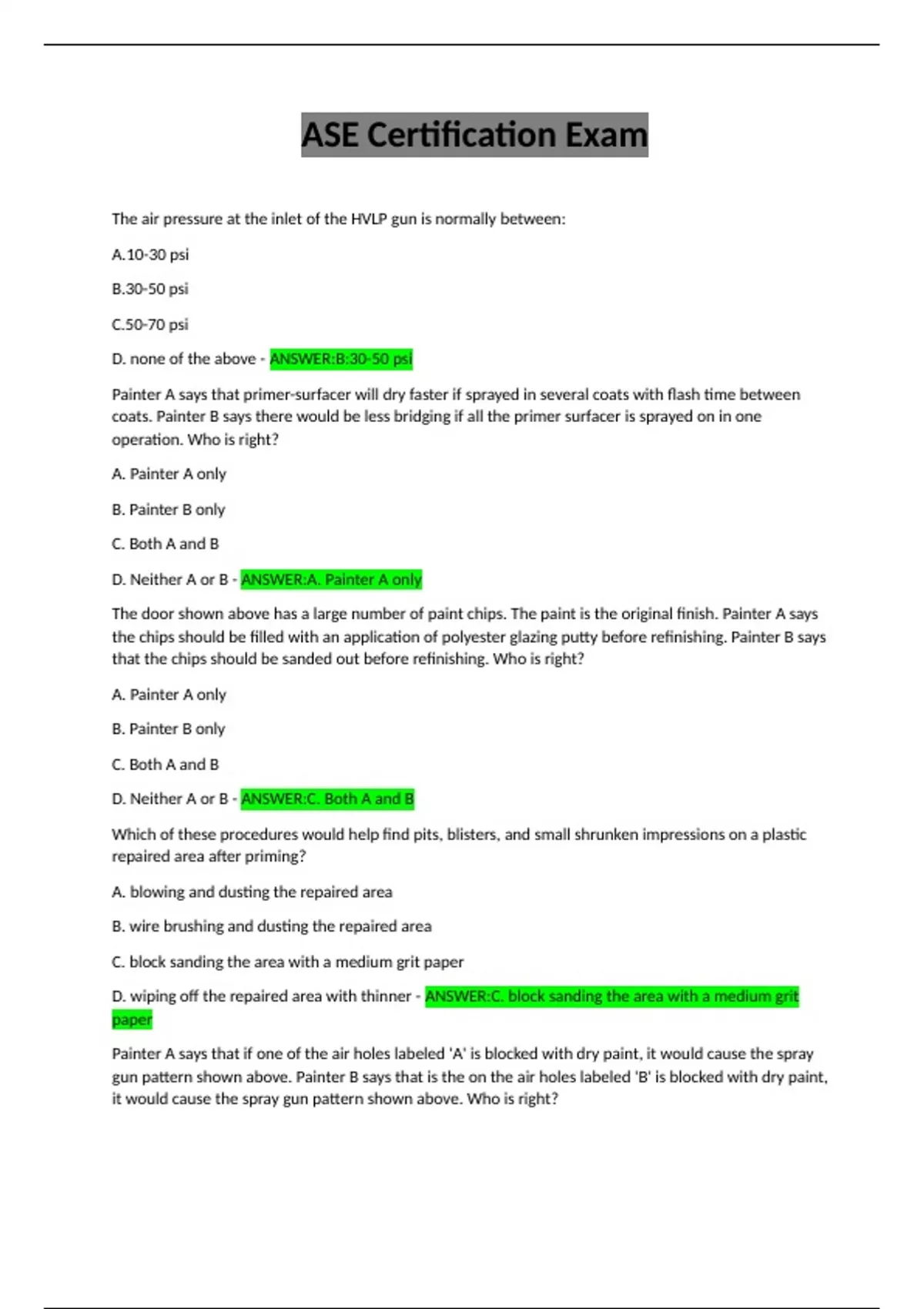 The door shown above has a large number of paint chips. The paint is the original finish. Painter A says