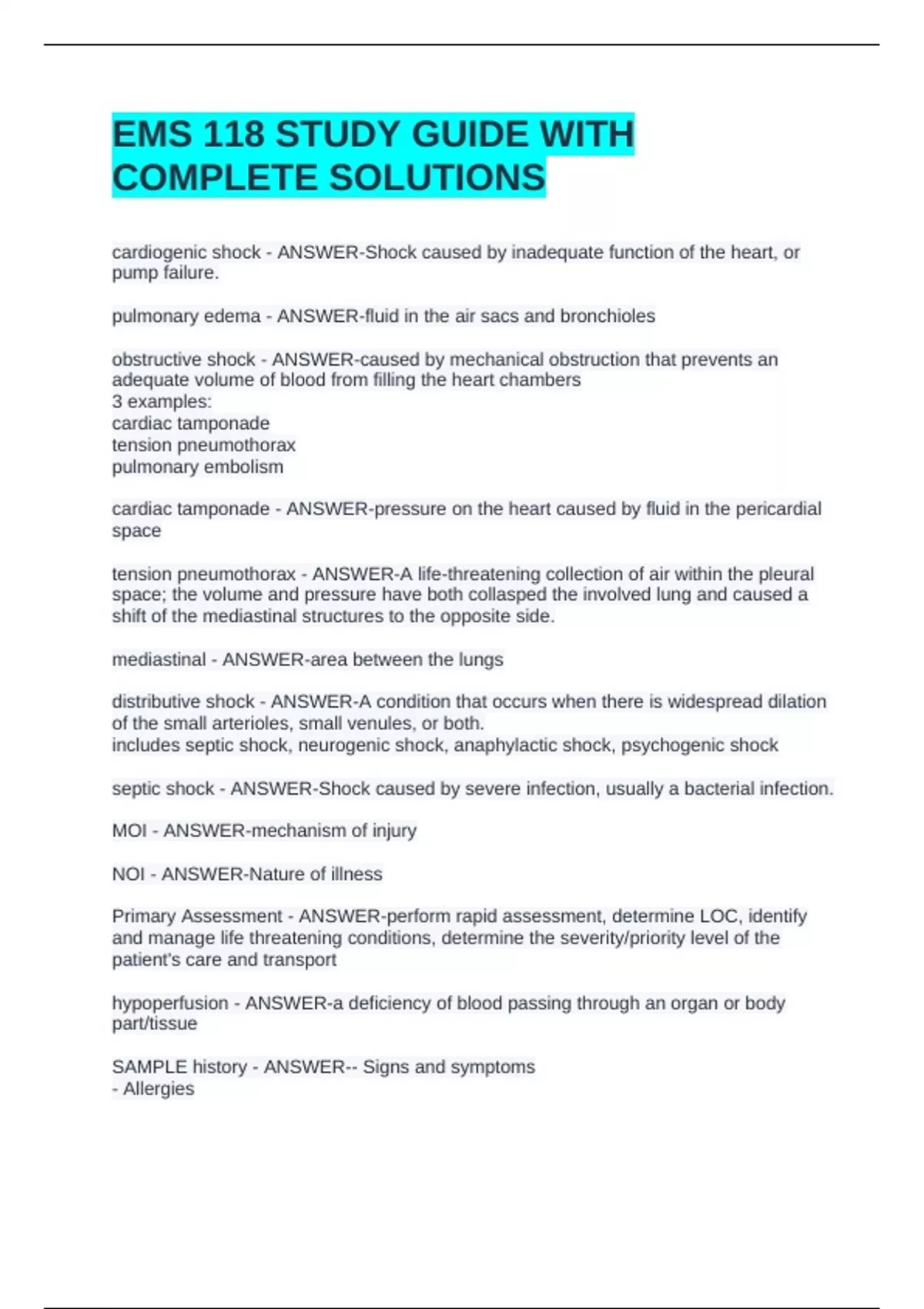 obstructive shock - ANSWER-caused by mechanical obstruction that prevents an