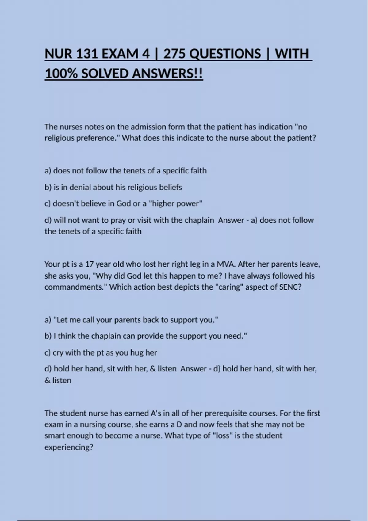 d) will not want to pray or visit with the chaplain Answer - a) does not follow
