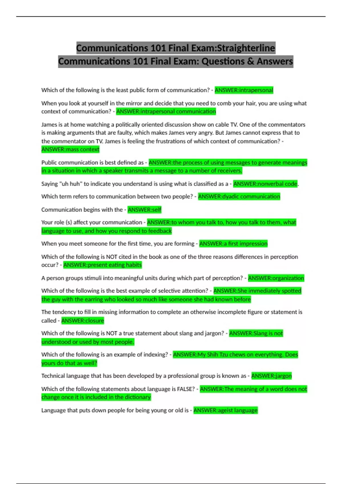 Communications 101 Final Exam: Questions & Answers