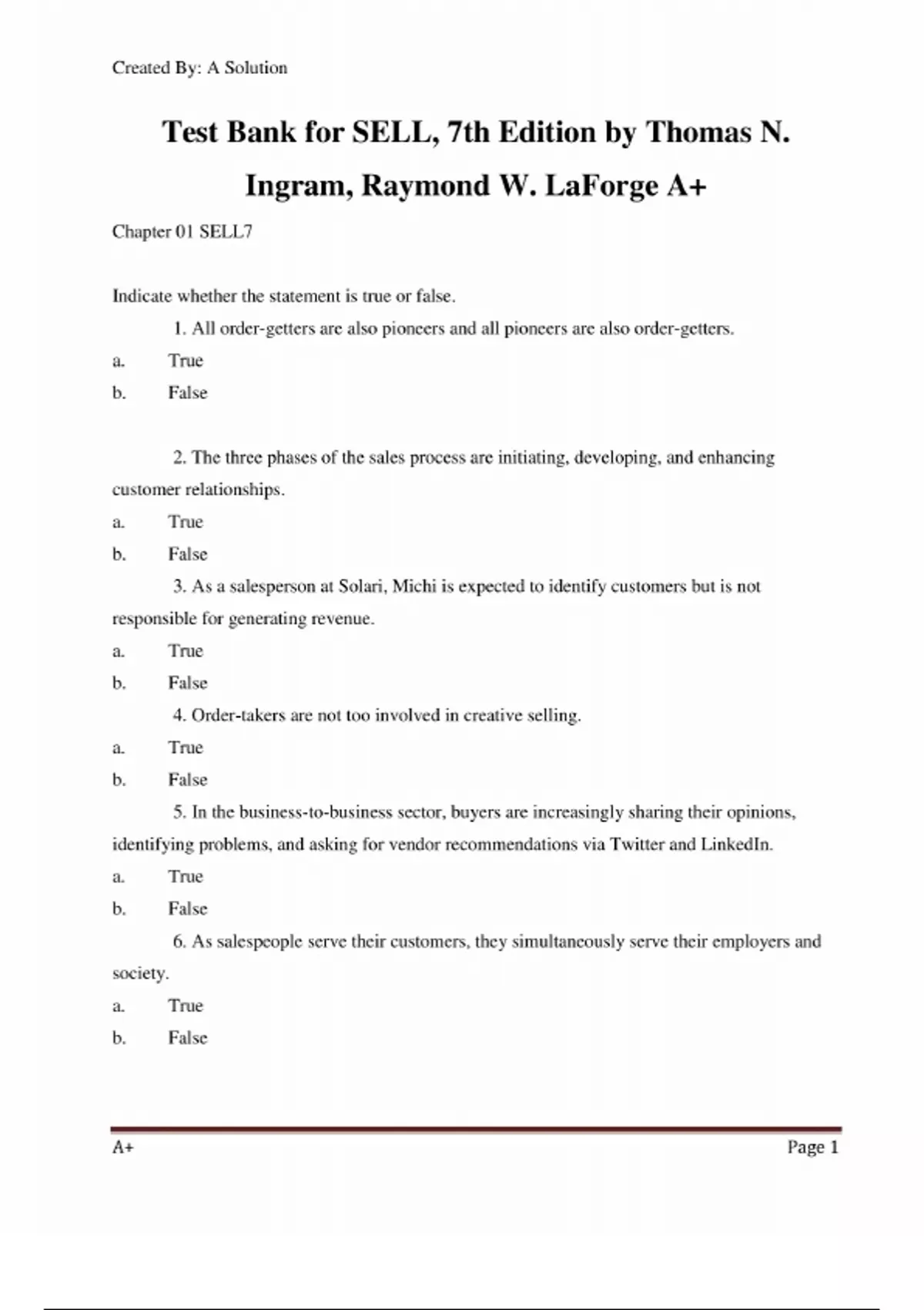 Test Bank for SELL, 7th Edition by Ingram, LaForge, ISBN: 9780357901380, All 10 Chapters Covered, Verified Latest Edition Test Bank for SELL, 7th Edition by Ingram, LaForge, ISBN: 9780357901380, All 10 Chapters Covered, Verified Latest Edition Test bank and solution manual pdf free download Test bank and solution manual pdf Test bank and solution manual pdf download Test bank and solution manual free download Test Bank solutions Test Bank PDF Test Bank Nursing