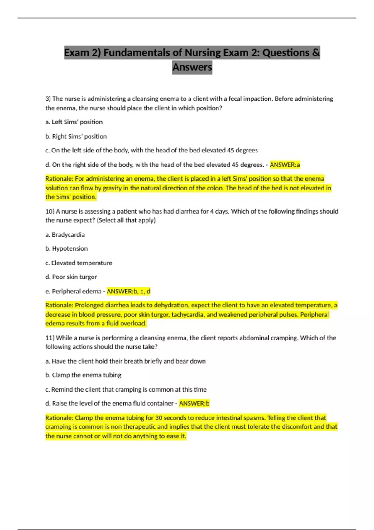 Exam 2) Fundamentals of Nursing Exam 2: Questions & Answers