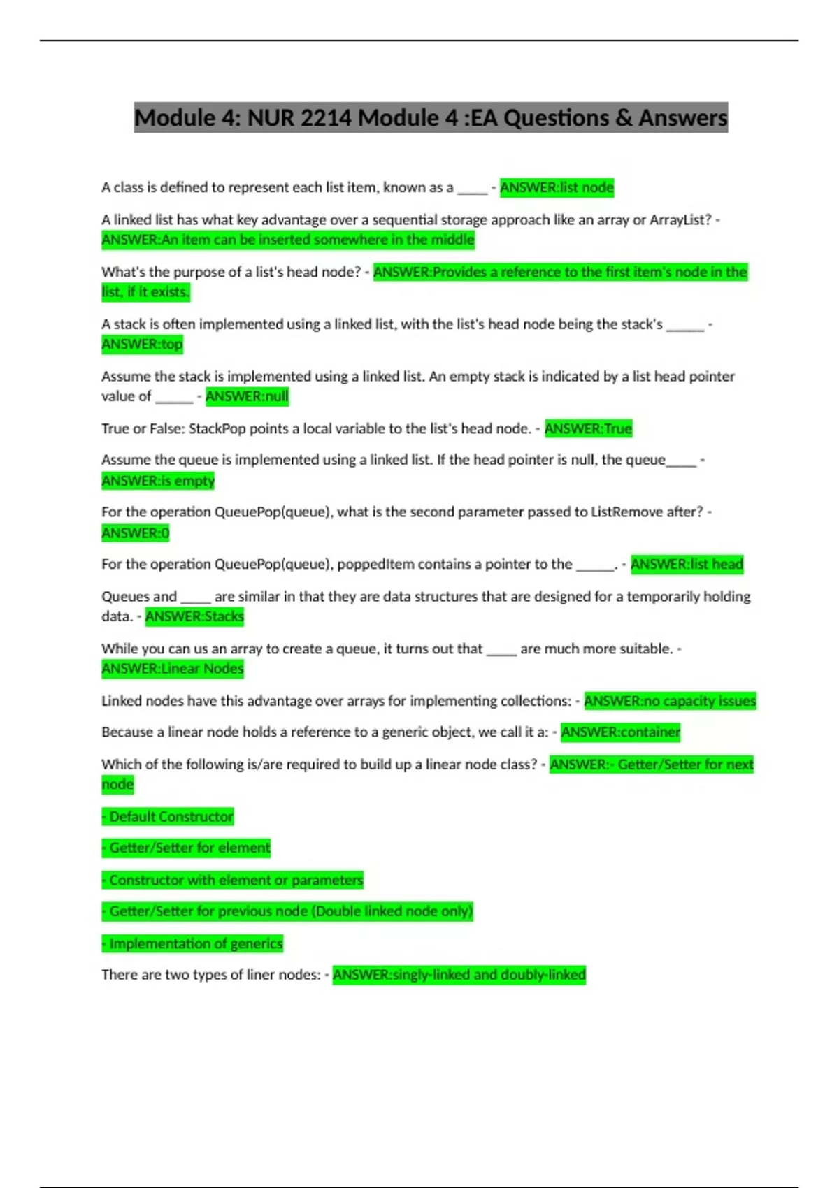 Which of the following is/are required to build up a linear node class? - ANSWER:- Getter/Setter for next