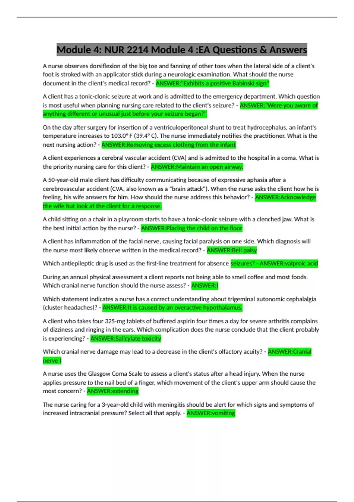 Module 4: NUR 2214 Module 4 :EA Questions & Answers