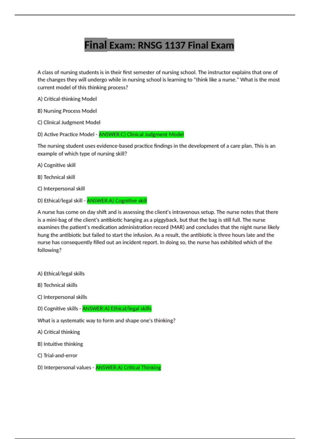 D) Ethical/legal skill - ANSWER:A) Cognitive skill