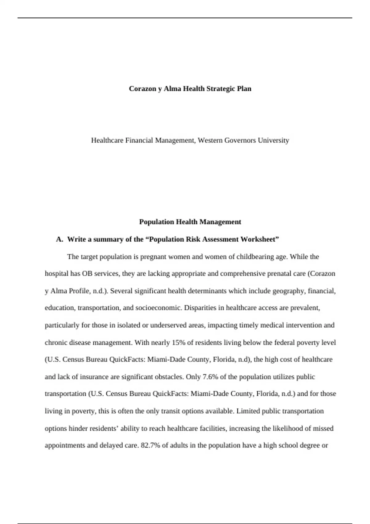 (U.S. Census Bureau QuickFacts: Miami-Dade County, Florida, n.d), the high cost of healthcare