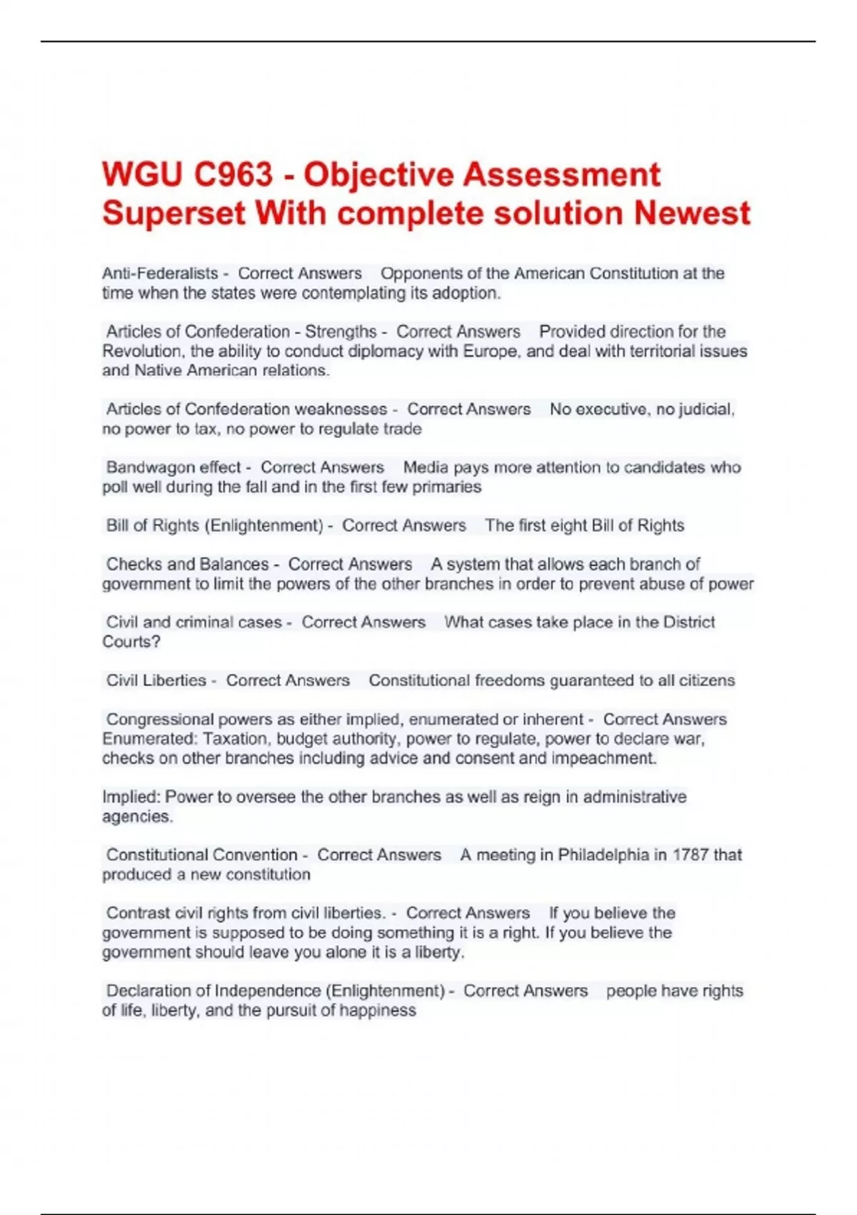 WGU C963 - Objective Assessment Superset With complete solution Newest