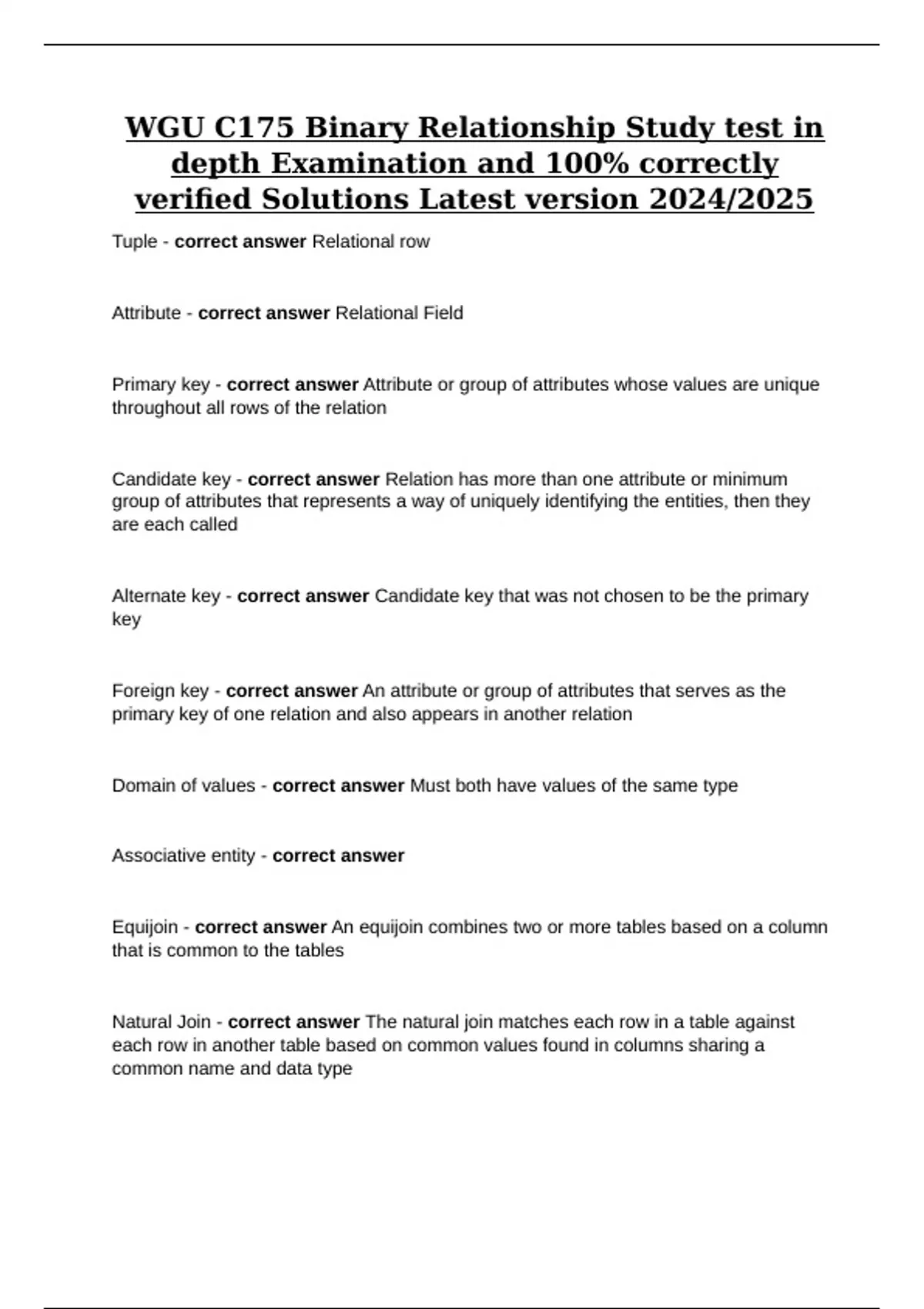 WGU C175 Binary Relationship Study test in depth Examination and 100% correctly verified Solutions Latest version 2024/2025