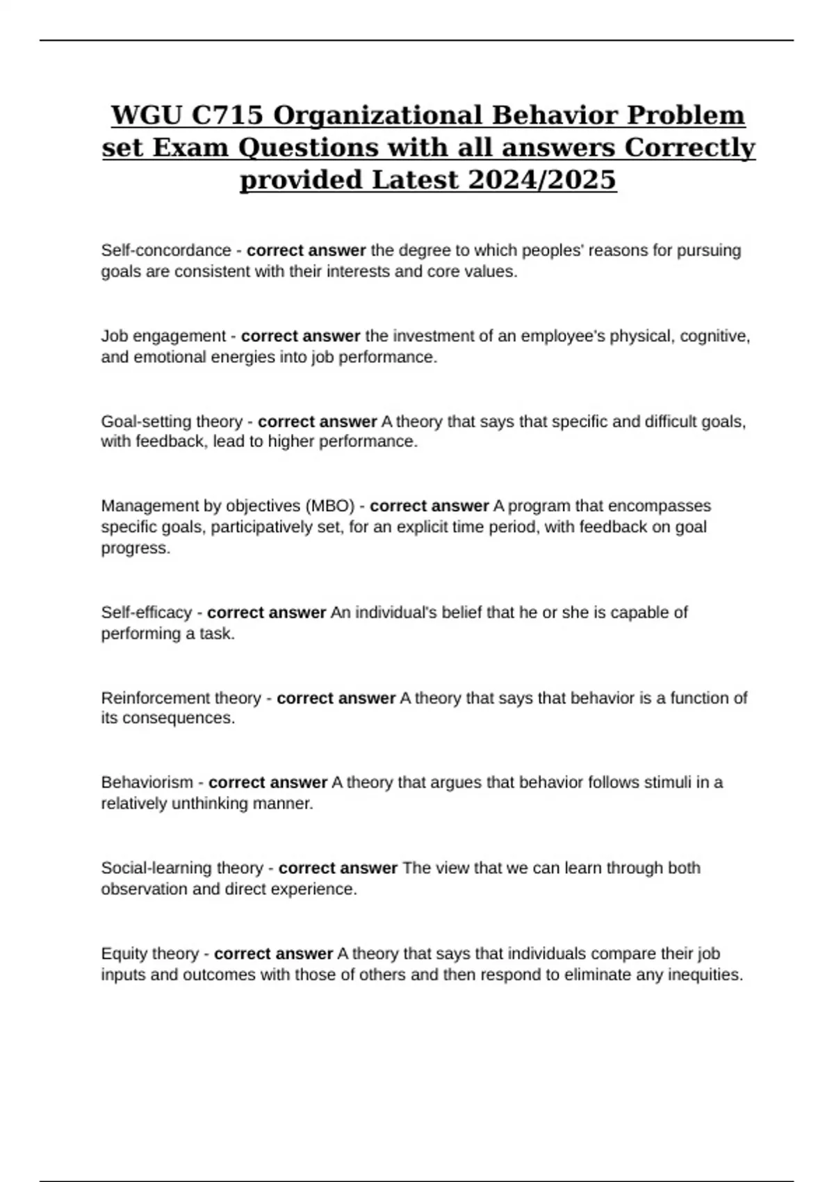 Reinforcement theory - correct answer A theory that says that behavior is a function of