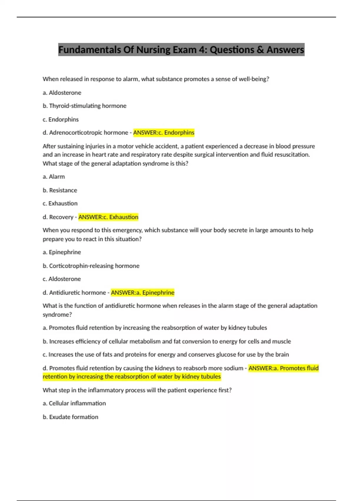 d. Antidiuretic hormone - ANSWER:a. Epinephrine