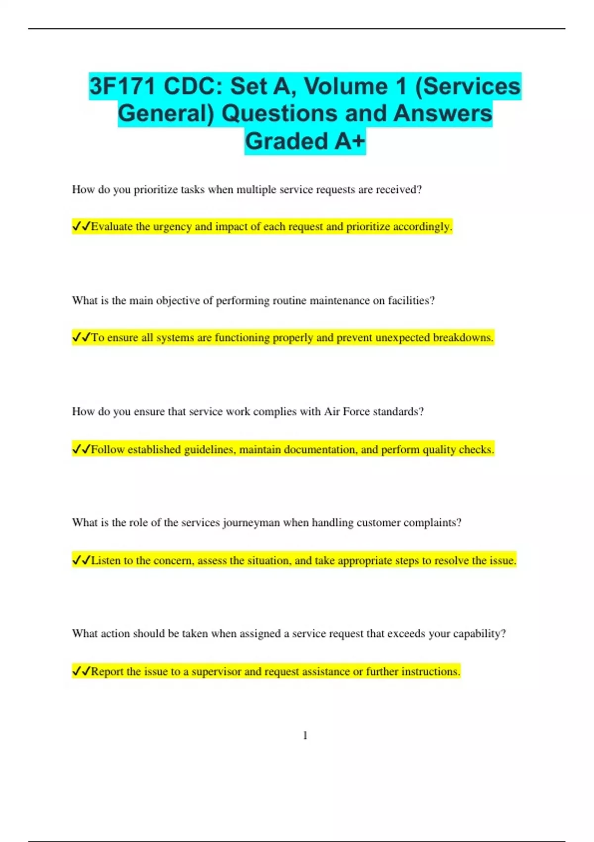 3F171 CDC: Set A, Volume 1 (Services General) Questions and Answers Graded A+