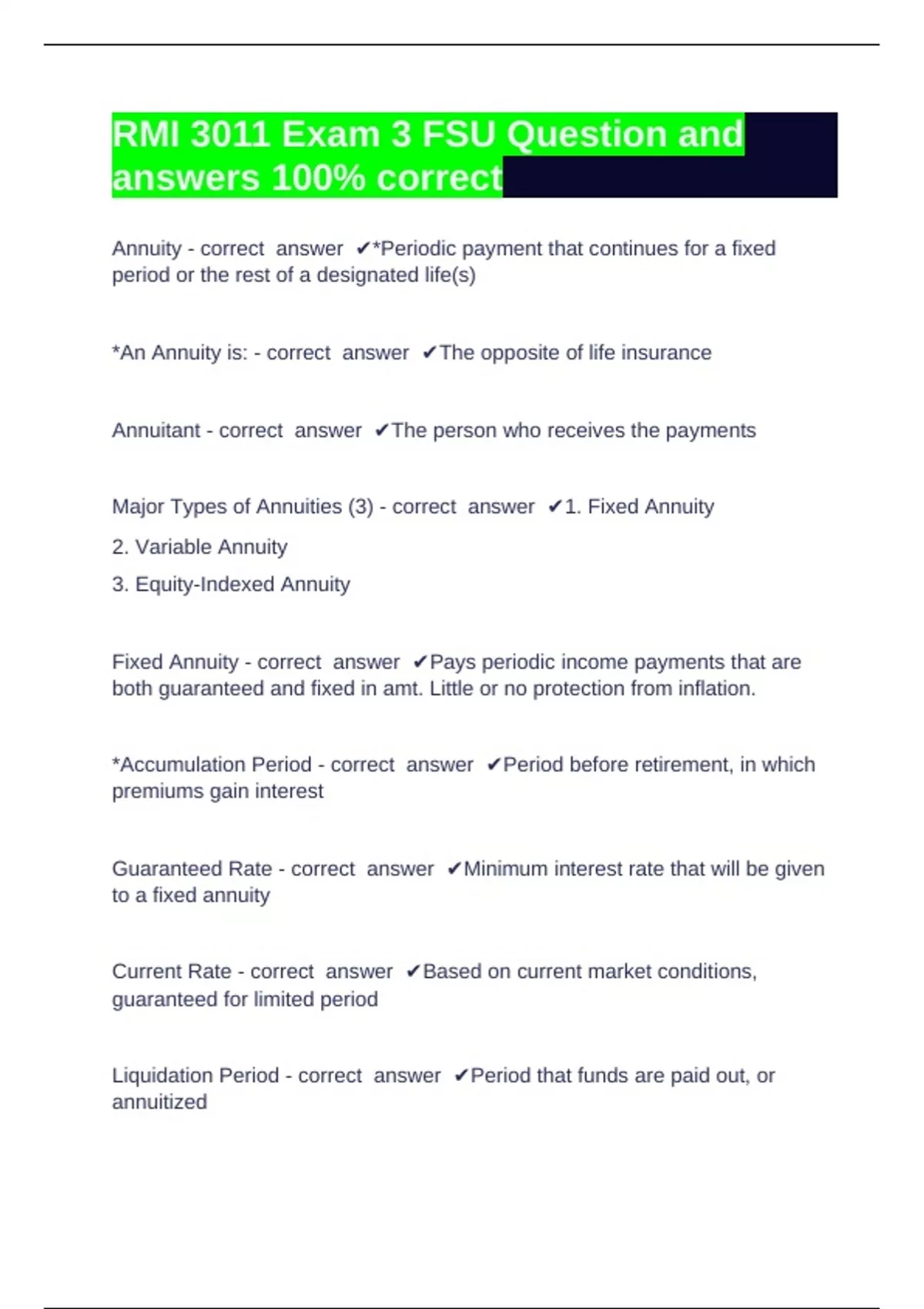 Major Types of Annuities (3) - correct answer ✔1. Fixed Annuity