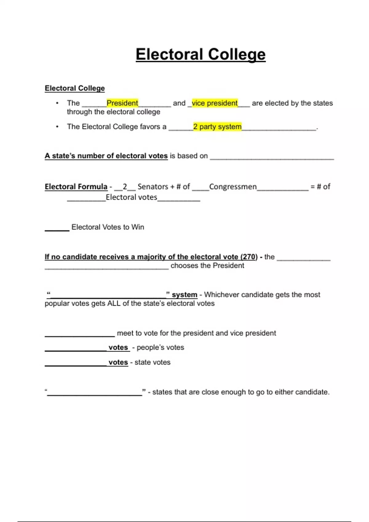Electoral Formula - __2__ Senators + # of ____Congressmen____________ = # of