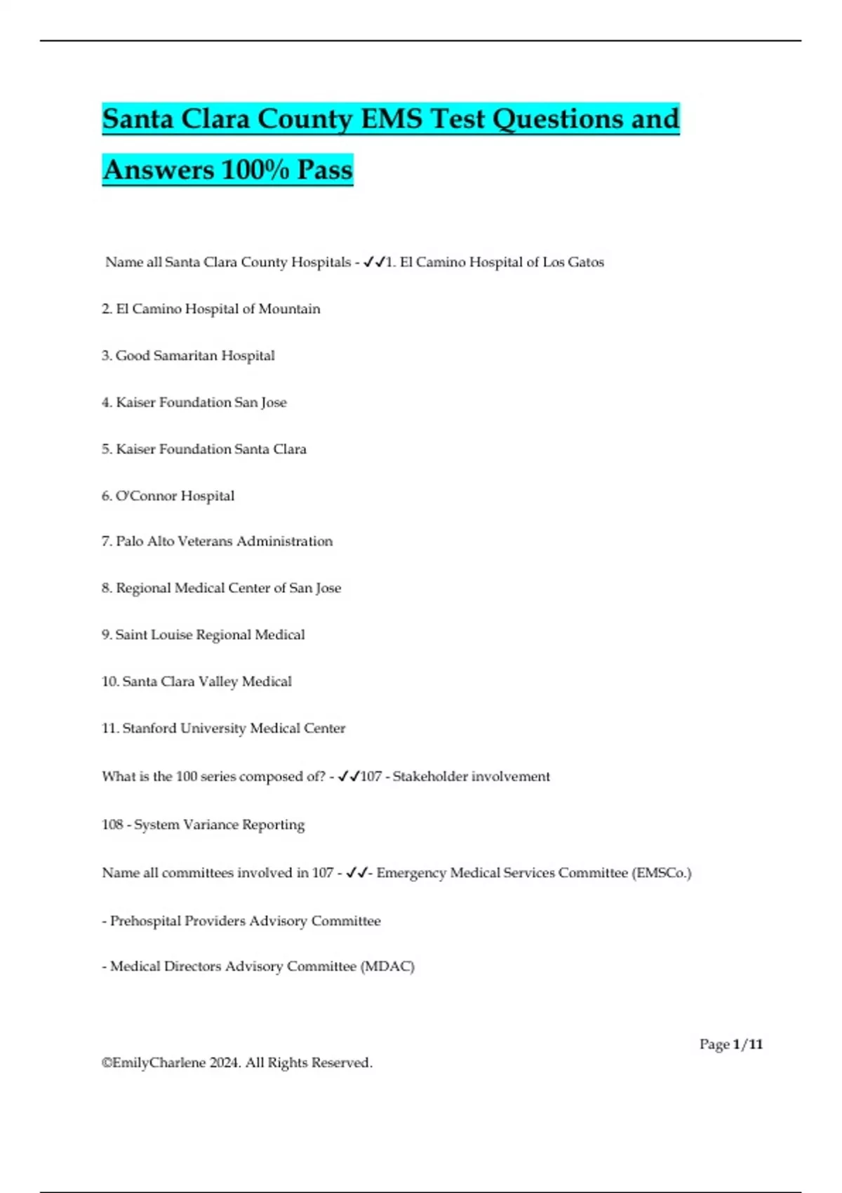 Name all Santa Clara County Hospitals - ✔✔1. El Camino Hospital of Los Gatos