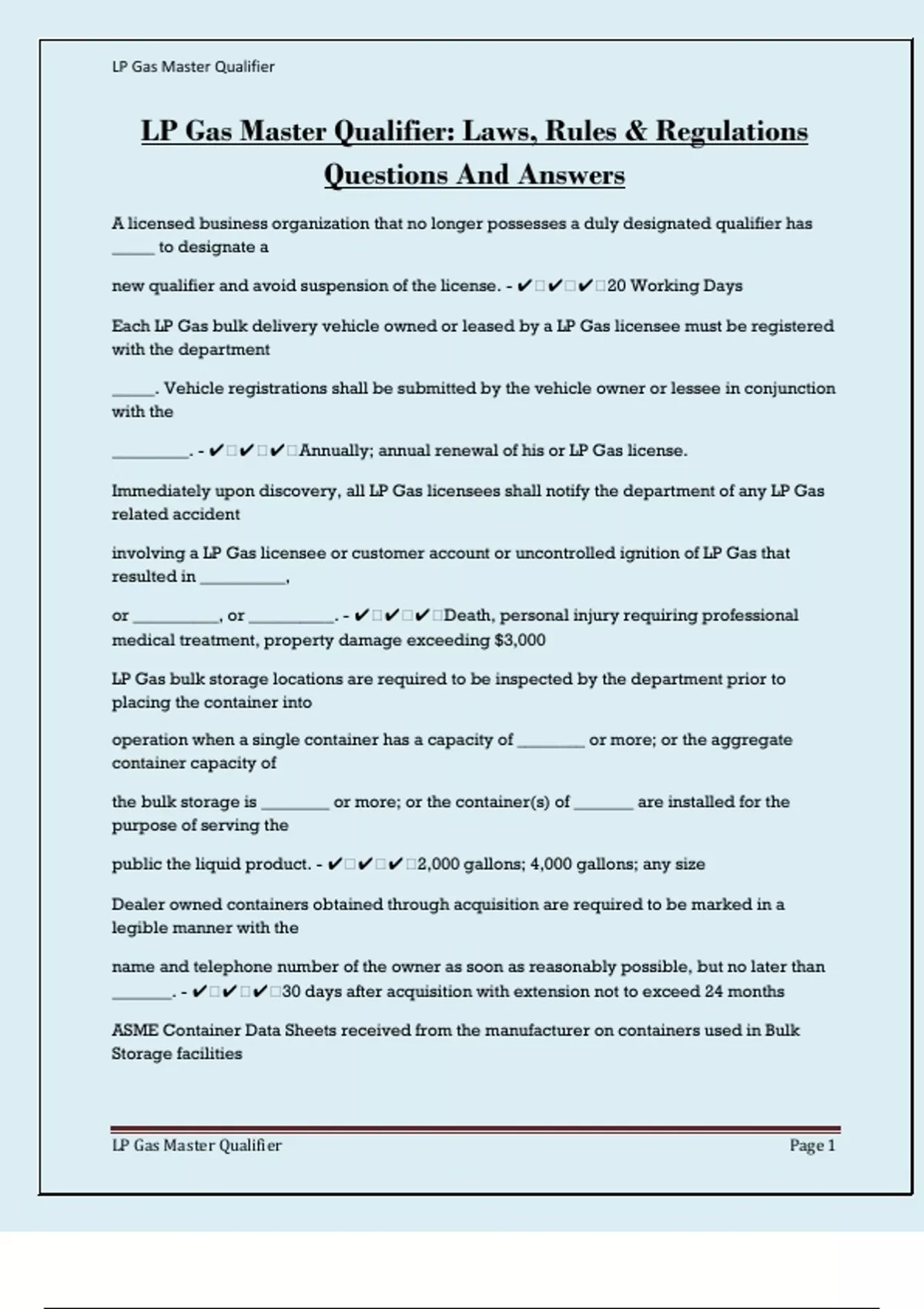 LP Gas Master Qualifier: Laws, Rules & Regulations