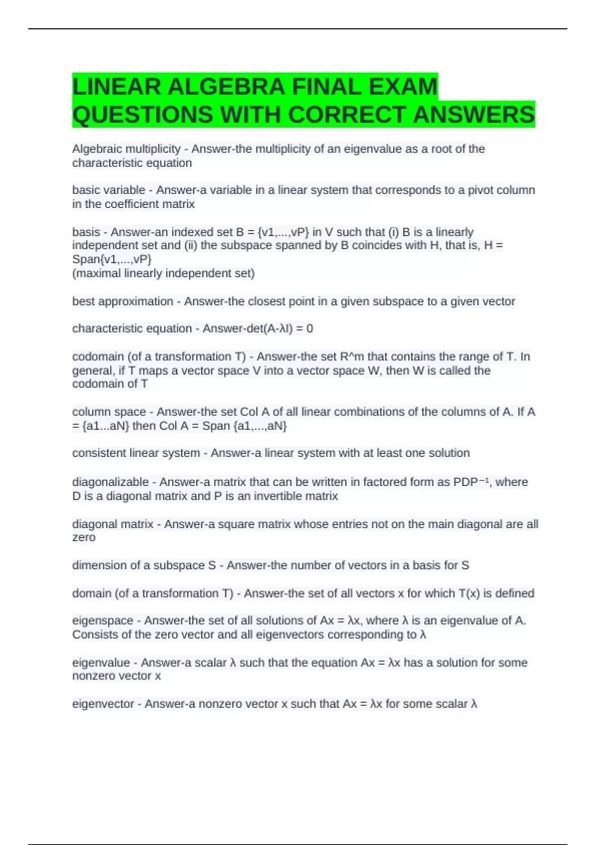 LINEAR ALGEBRA FINAL EXAM QUESTIONS AND ANSWERS