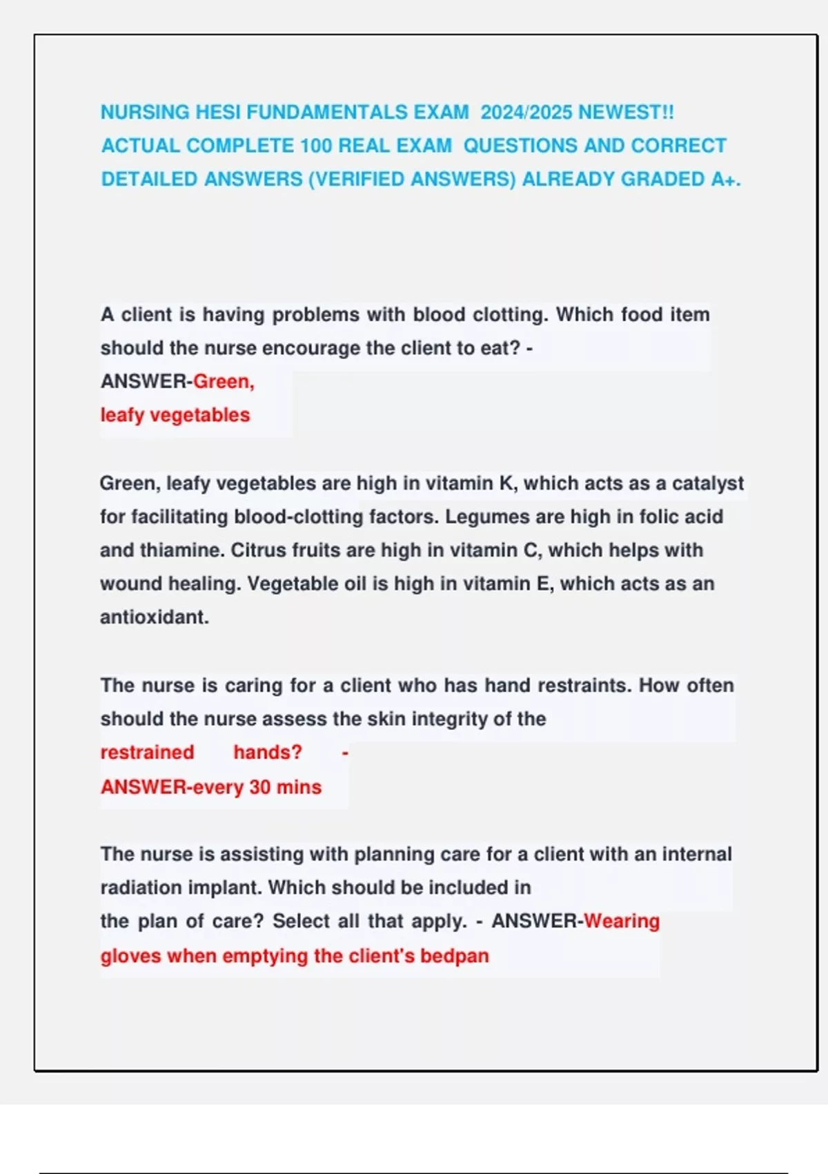 ACTUAL COMPLETE 100 REAL EXAM QUESTIONS AND CORRECT