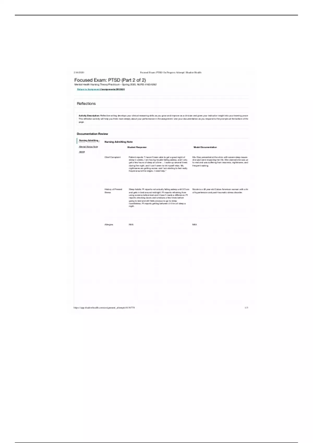 2/16/2020 Focused Exam: PTSD | In Progress Attempt | Shadow Health