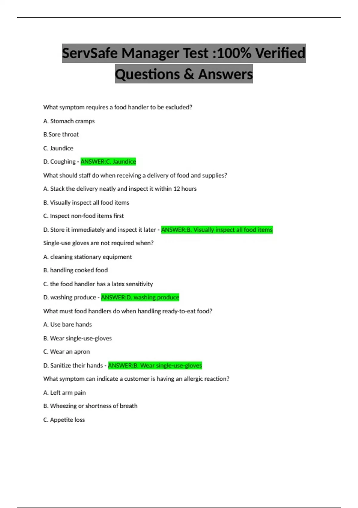 D. Sanitize their hands - ANSWER:B. Wear single-use-gloves