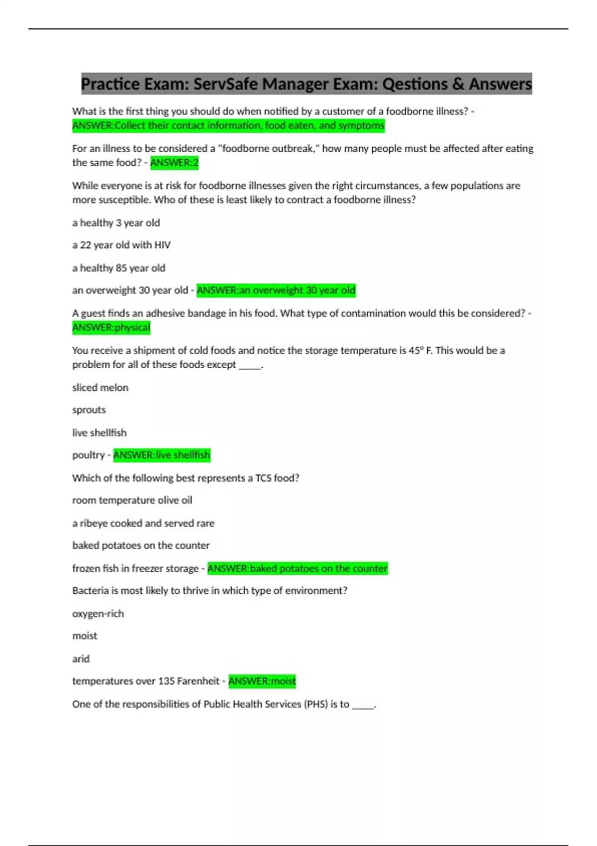 Practice Exam: ServSafe Manager Exam: Qestions & Answers