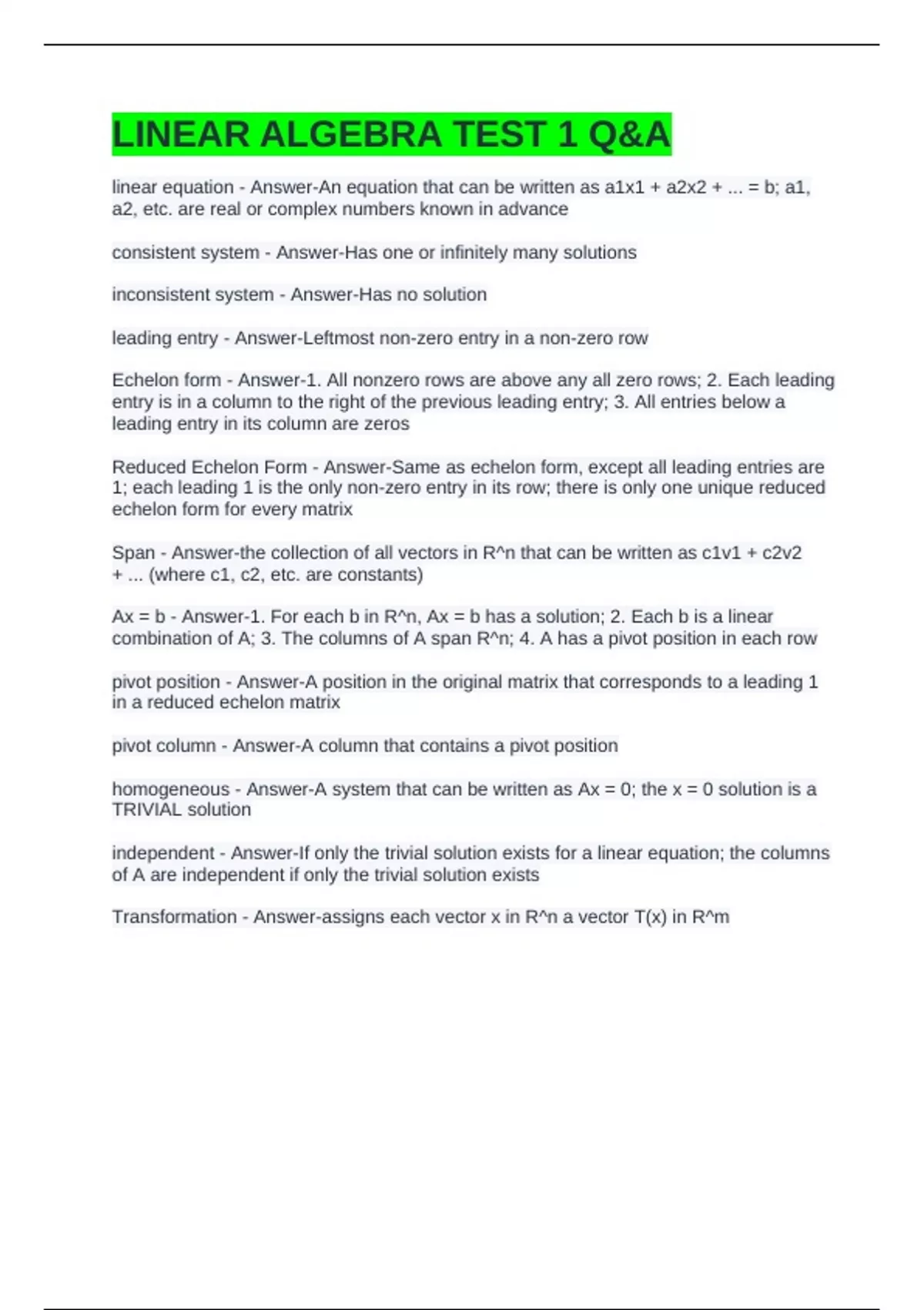 LINEAR ALGEBRA TEST 1 Q&A
