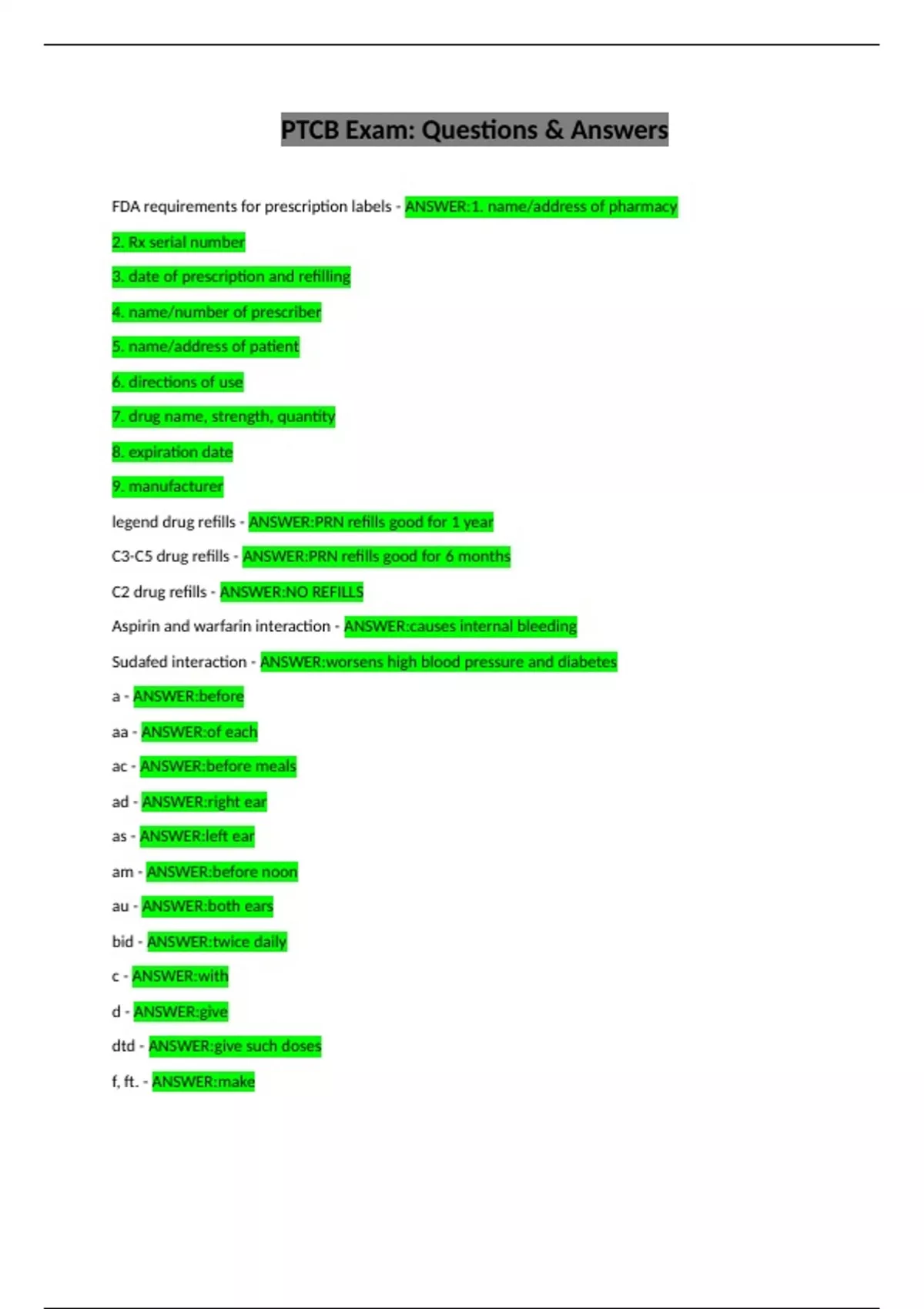 FDA requirements for prescription labels - ANSWER:1. name/address of pharmacy