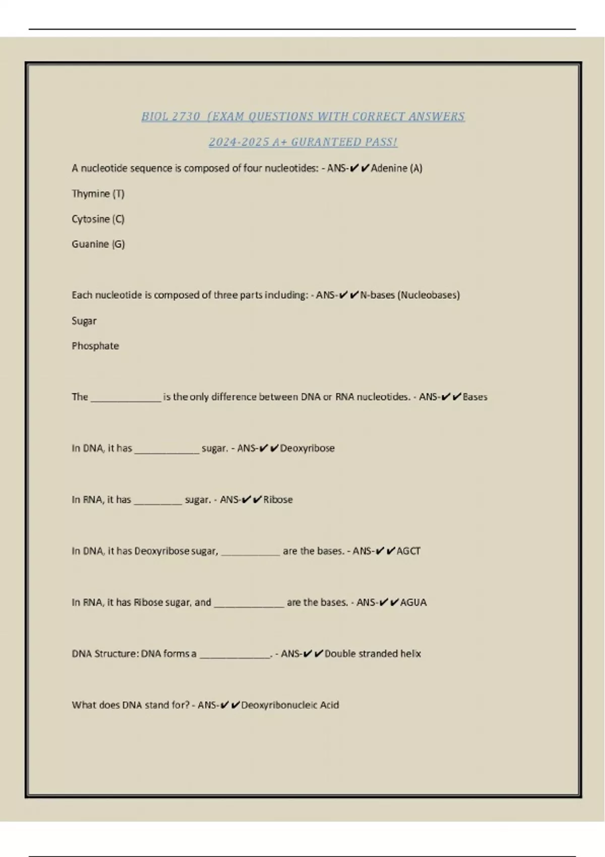 BIOL 2730 (EXAM QUESTIONS WITH CORRECT ANSWERS A+ GURANTEED PASS!