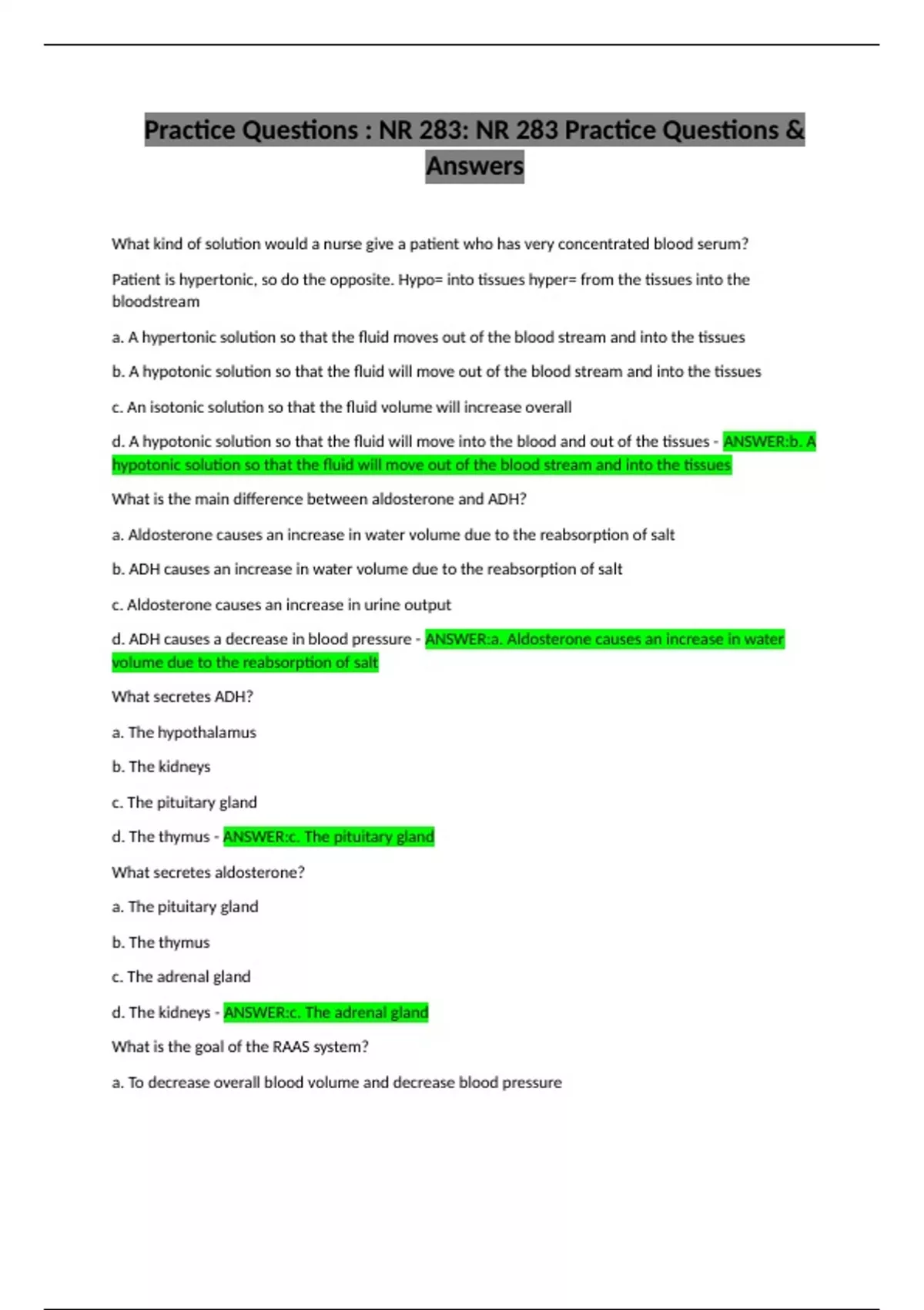 Practice Questions : NR 283: NR 283 Practice Questions & Answers