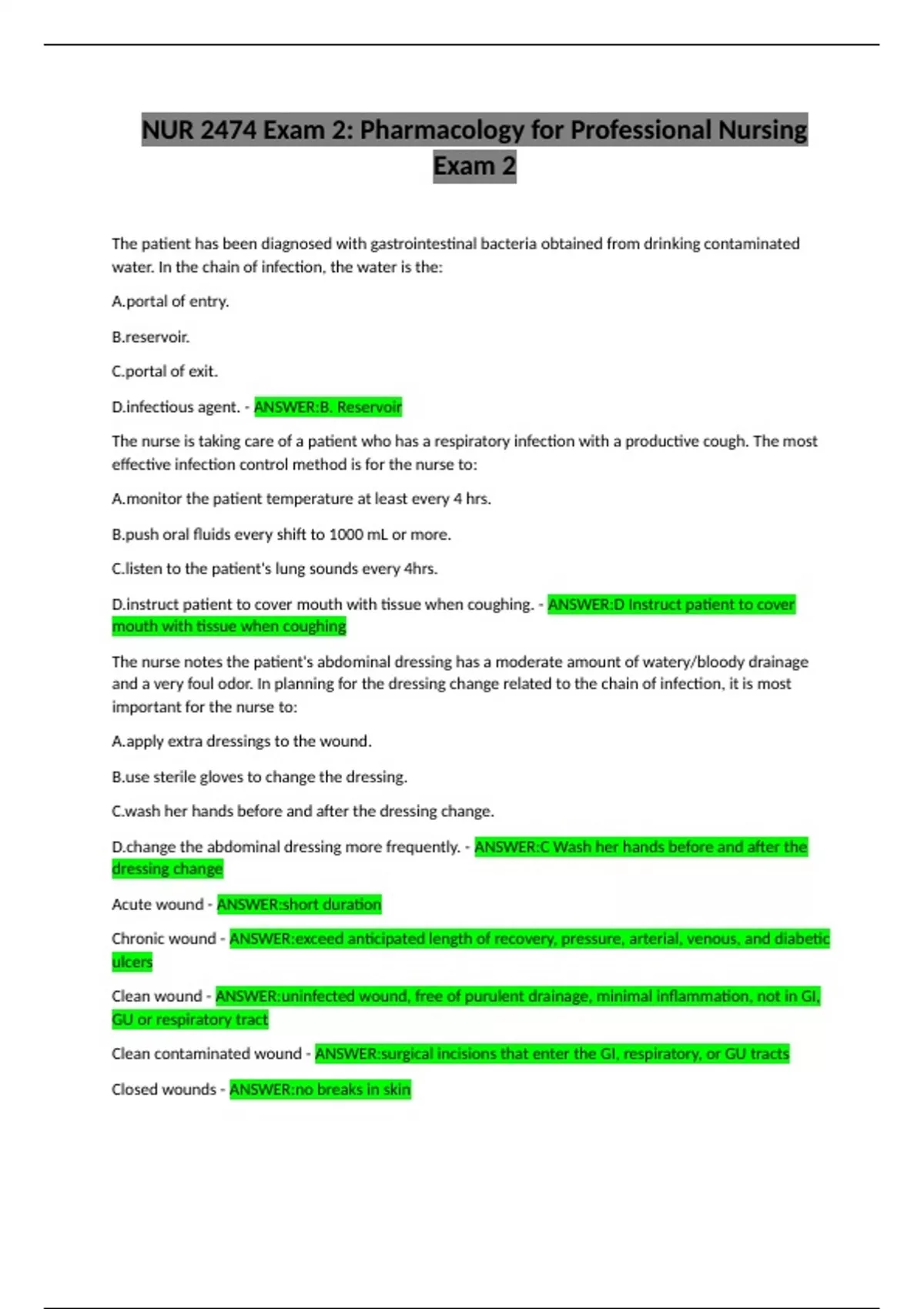 NUR 2474 Exam 2: Pharmacology for Professional Nursing Exam 2