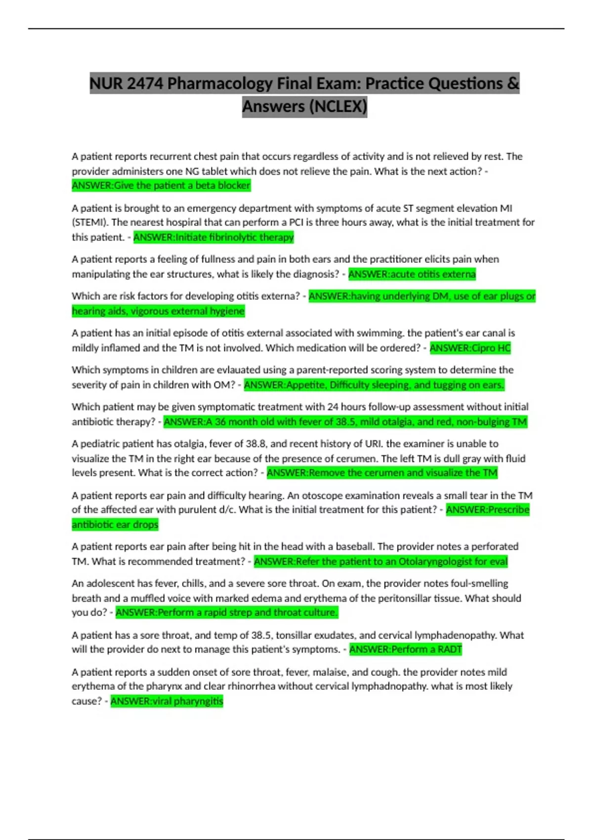 Answers (NCLEX)