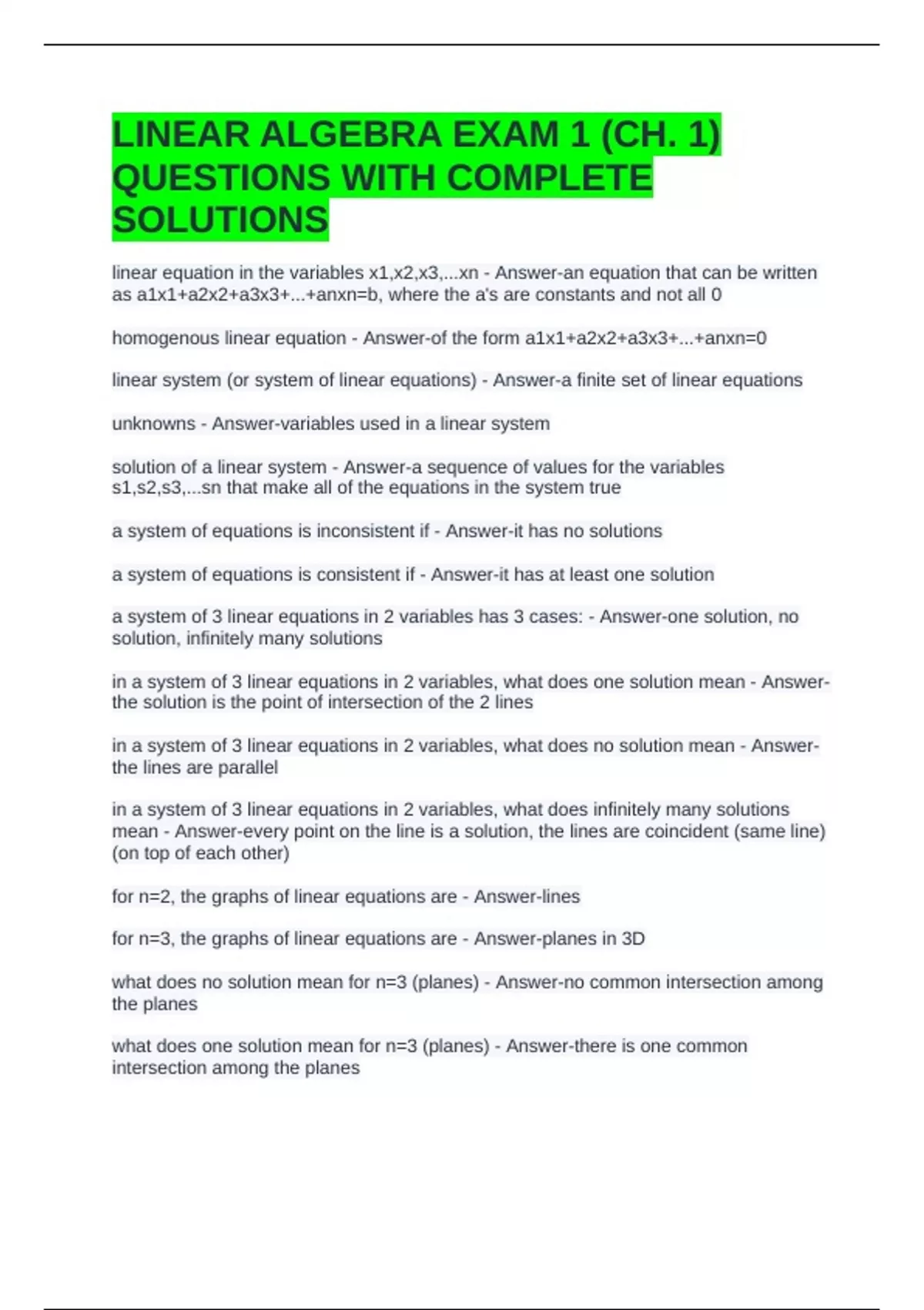 linear equation in the variables x1,x2,x3,...xn - Answer-an equation that can be written