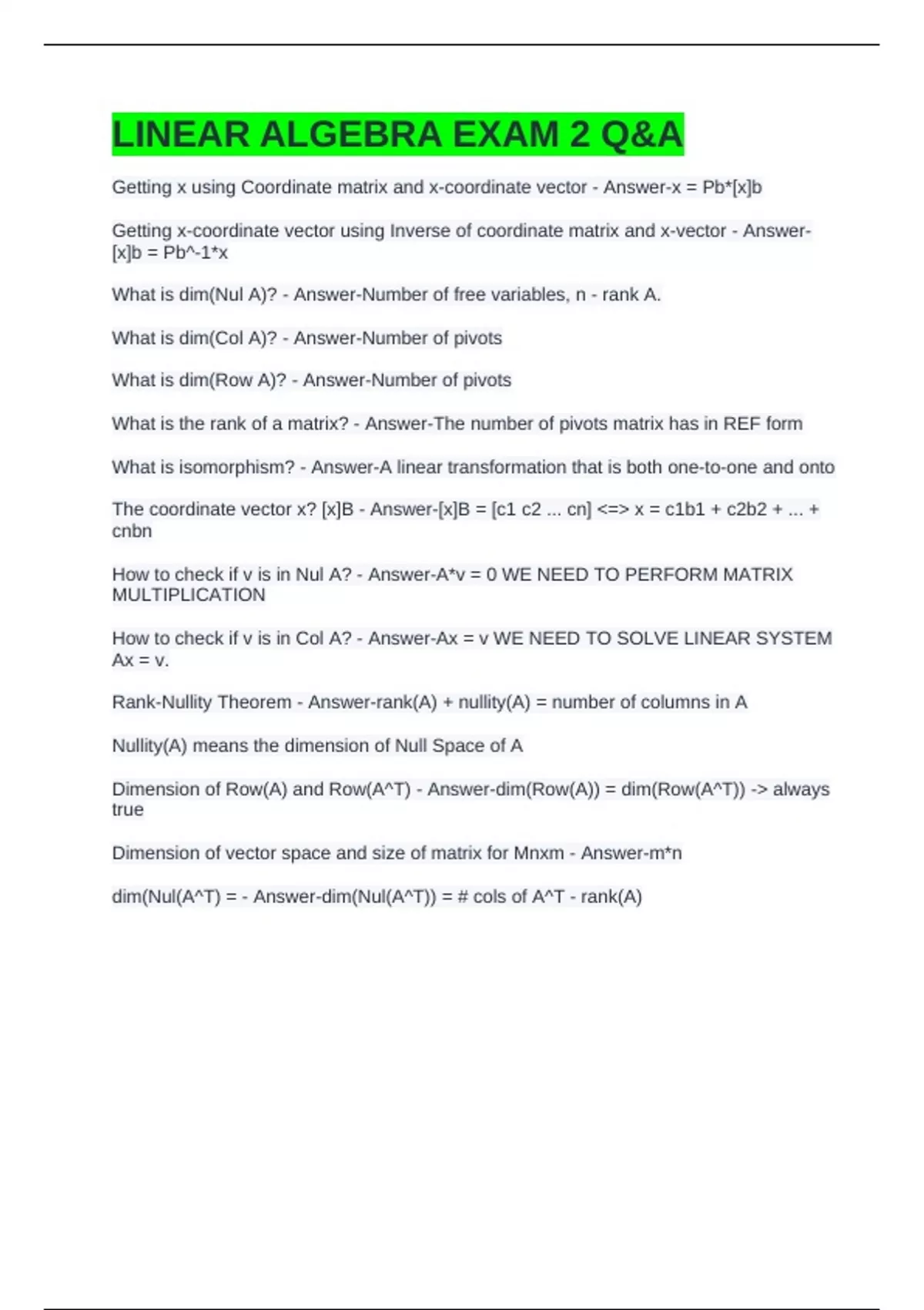 LINEAR ALGEBRA EXAM 2 Q&A