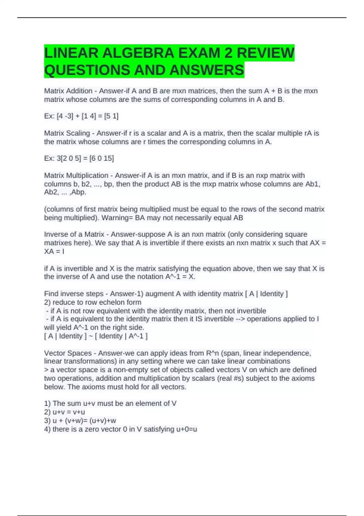 LINEAR ALGEBRA EXAM 2 REVIEW