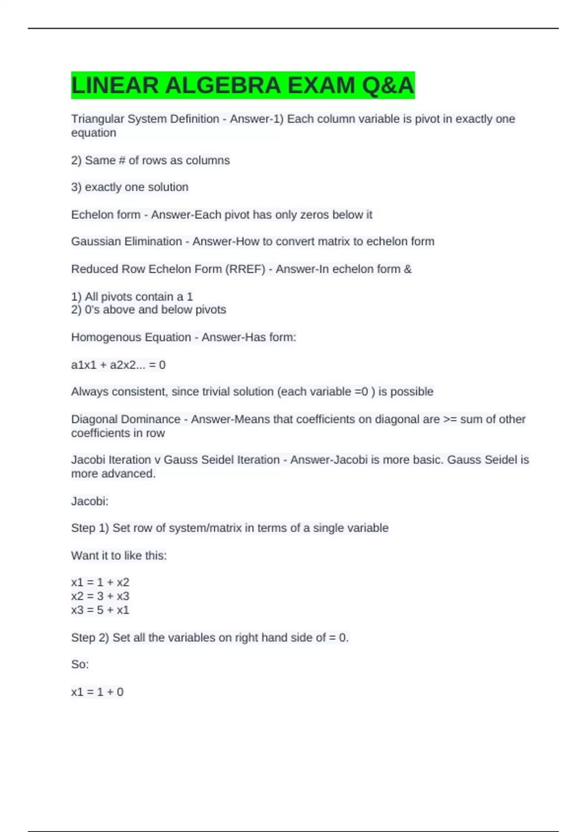 LINEAR ALGEBRA EXAM Q&A