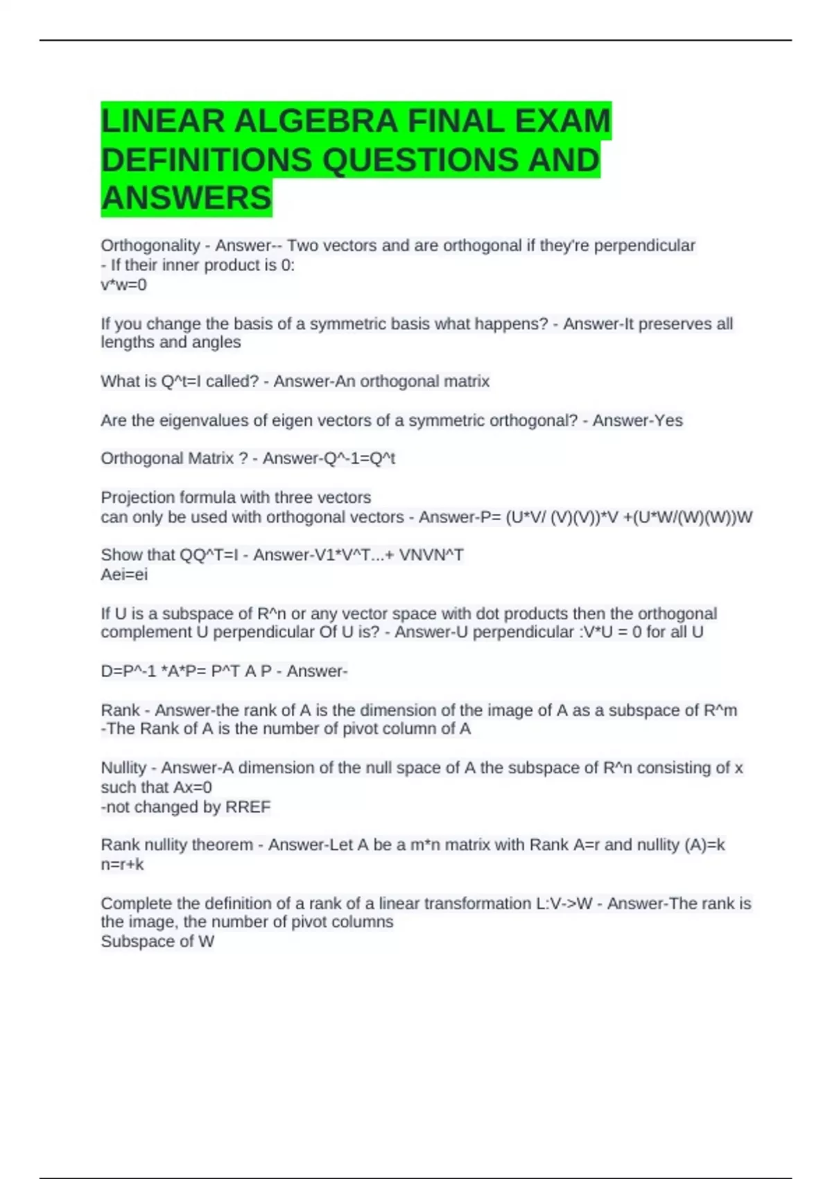 What is Q^t=I called? - Answer-An orthogonal matrix