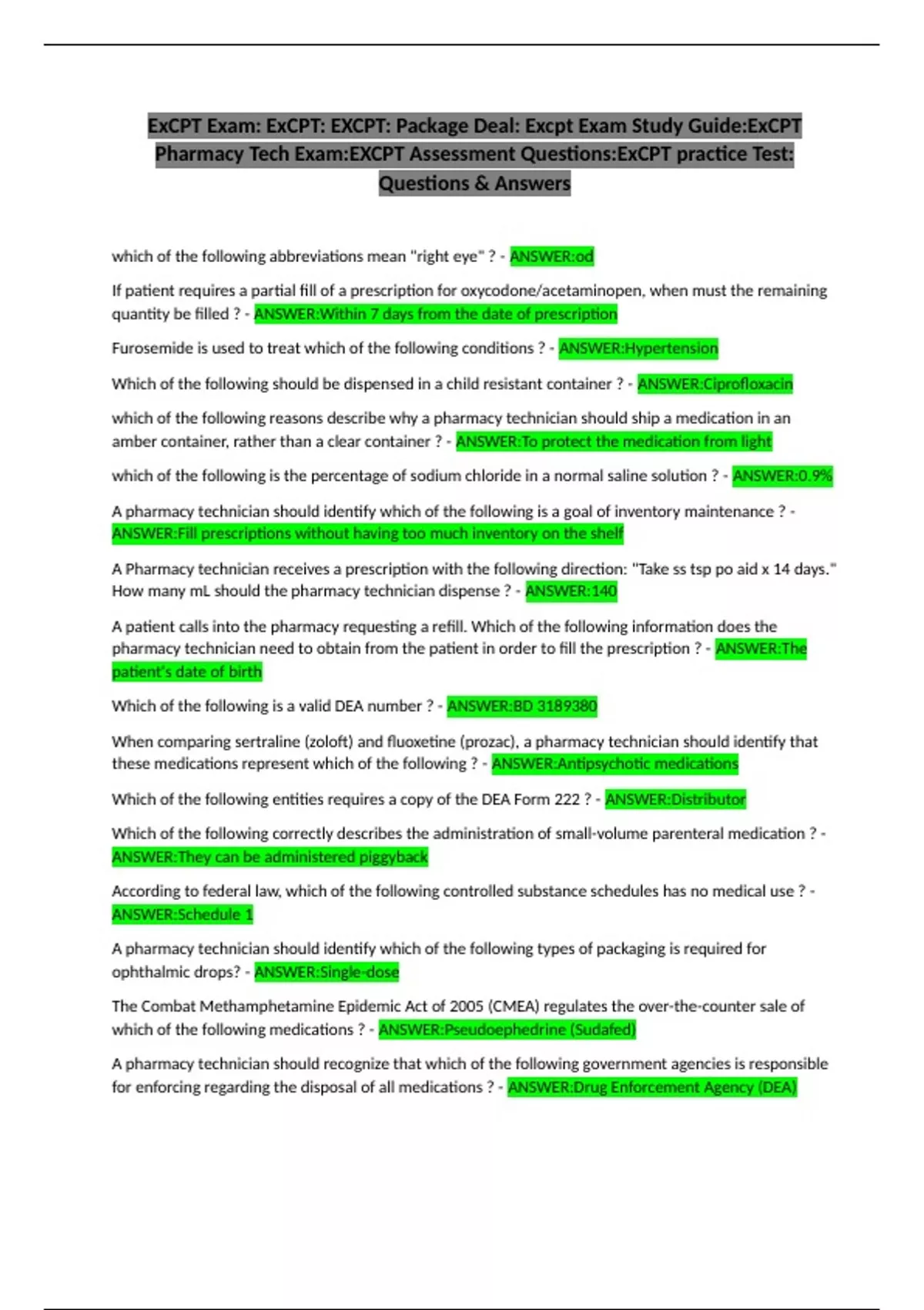 ExCPT Exam: ExCPT: EXCPT: Package Deal: Excpt Exam Study Guide:ExCPT Pharmacy Tech Exam:EXCPT Assessment Questions:ExCPT practice Test: Questions & Answers