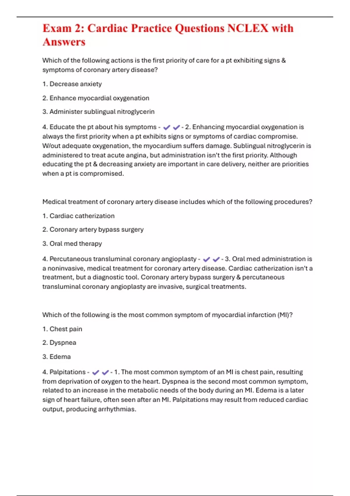 ,Exam 2: Cardiac Practice Questions NCLEX with