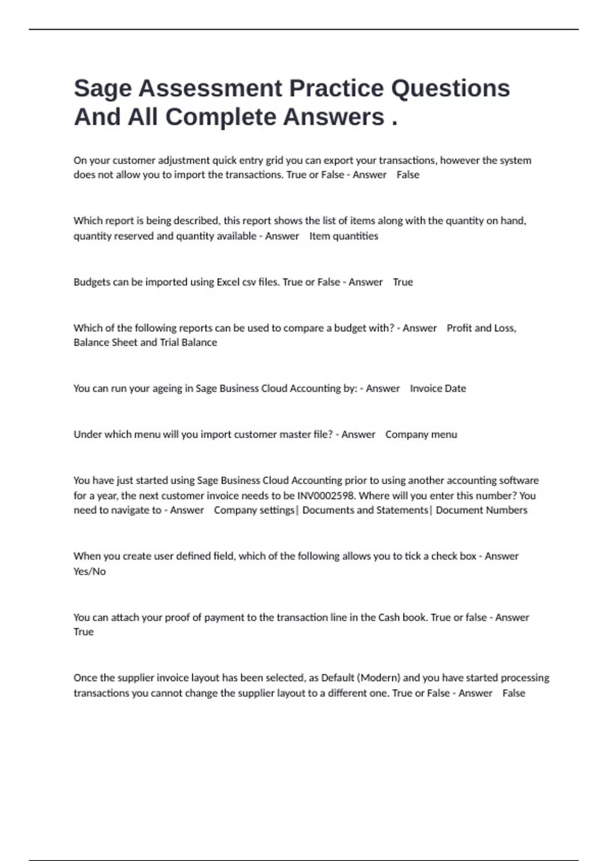 does not allow you to import the transactions. True or False - Answer False