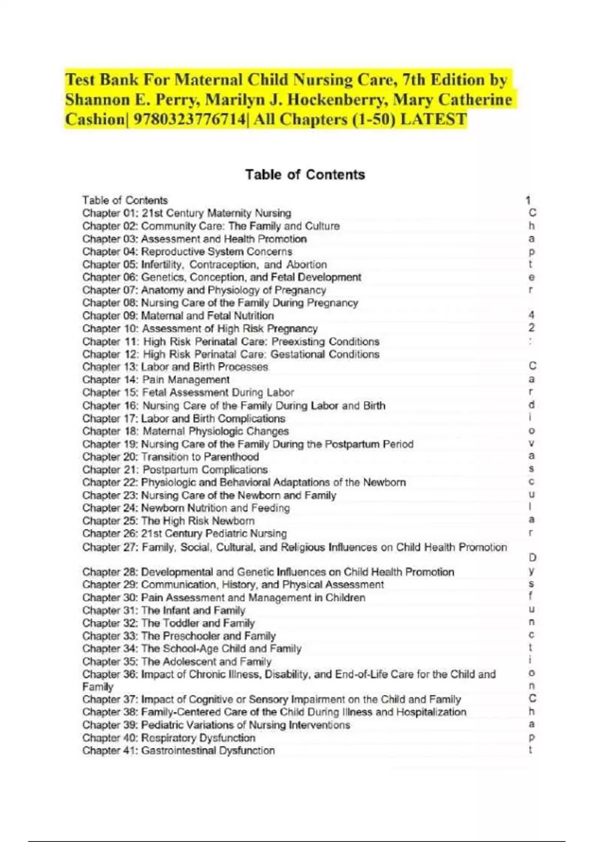 Test Bank For Maternal Child Nursing Care, 7th Edition by Shannon E. Perry, Marilyn J. Hockenberry, Mary Catherine Cashion| 9780323776714| All Chapters (1-50) LATEST