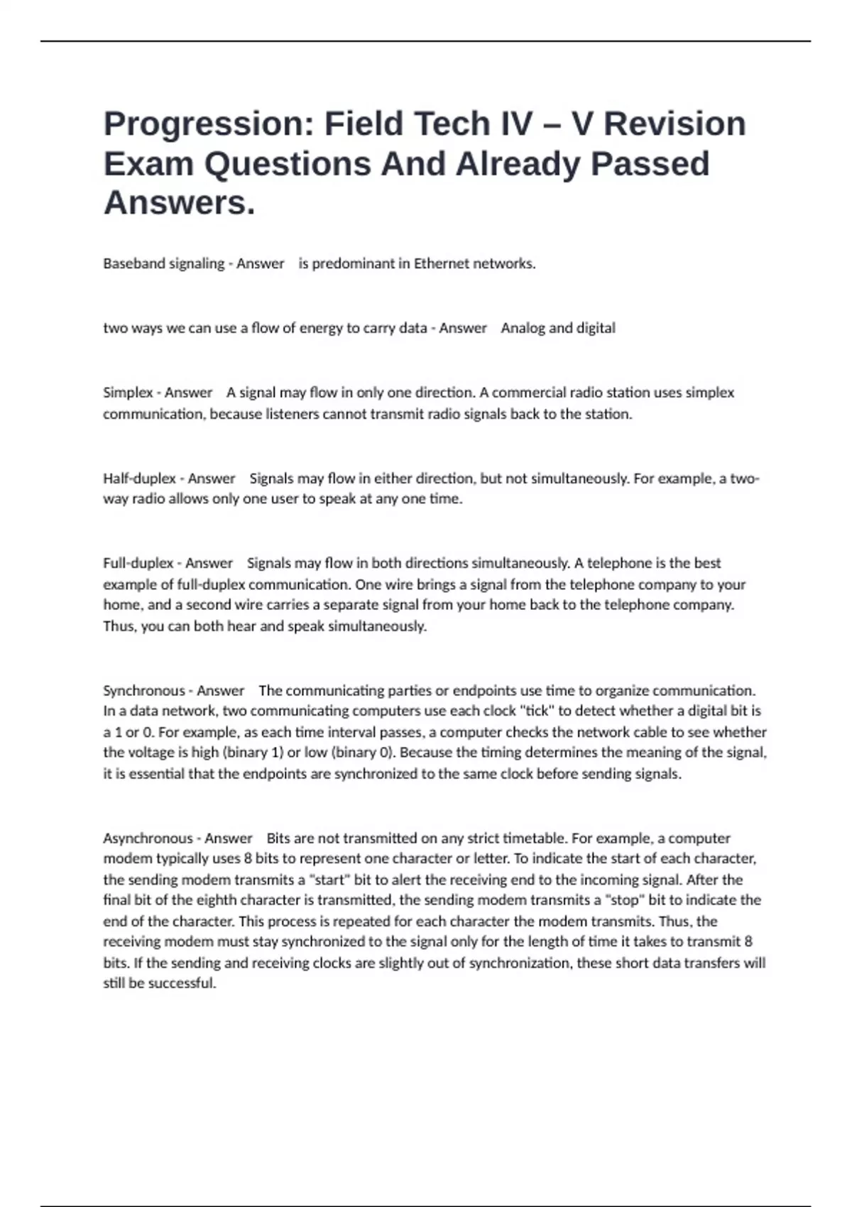 Progression: Field Tech IV – V Revision Exam Questions And Already Passed Answers.