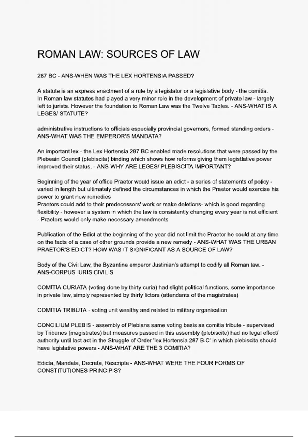 ROMAN LAW SOURCES OF LAW Questions and Correct Answers (100% COMPLETE ANSWERS) ALREADY GRADED A+ | 100% satisfaction guarantee with complete solutions, (Latest update)