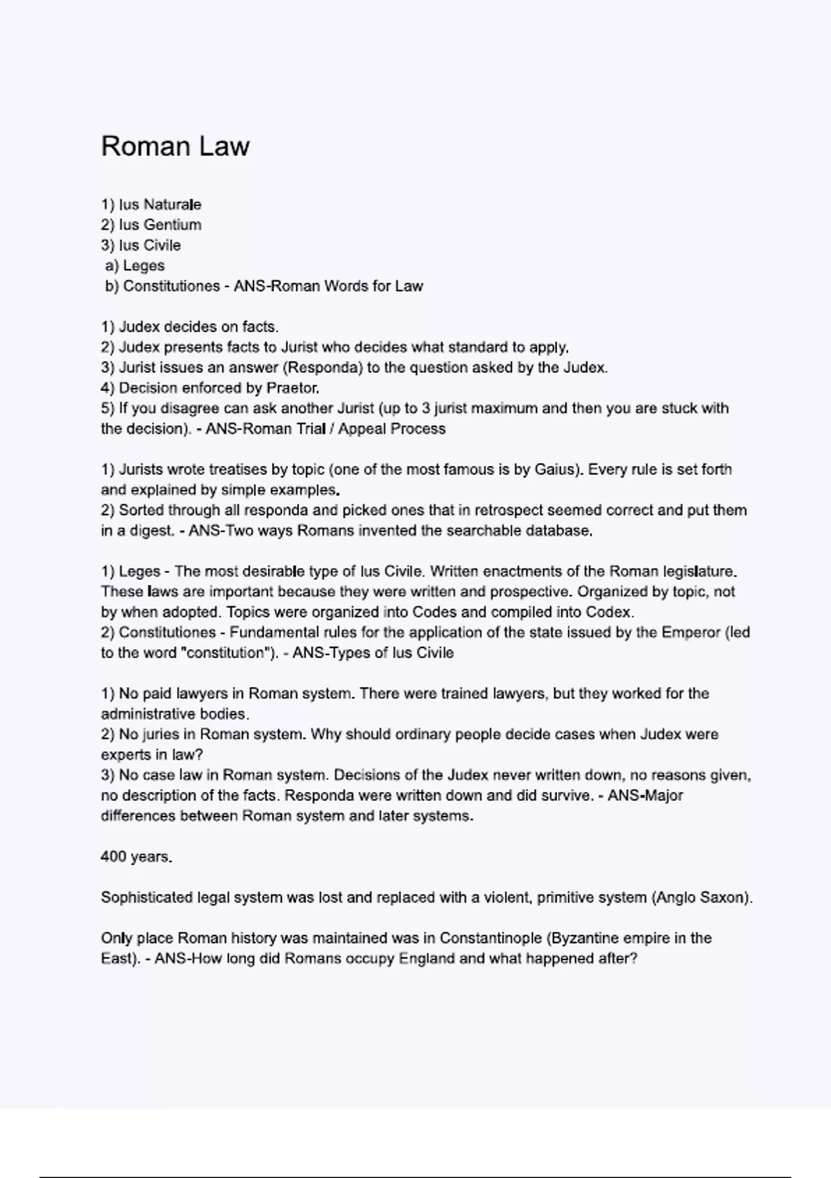 Roman Law Questions and Correct Answers (100% COMPLETE ANSWERS) ALREADY GRADED A+ | 100% satisfaction guarantee with complete solutions, (Latest update)