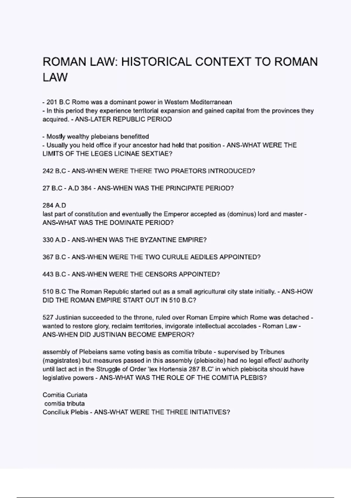 ROMAN LAW HISTORICAL CONTEXT TO ROMAN LAW (COMPLETE ANSWERS) 2024/2025