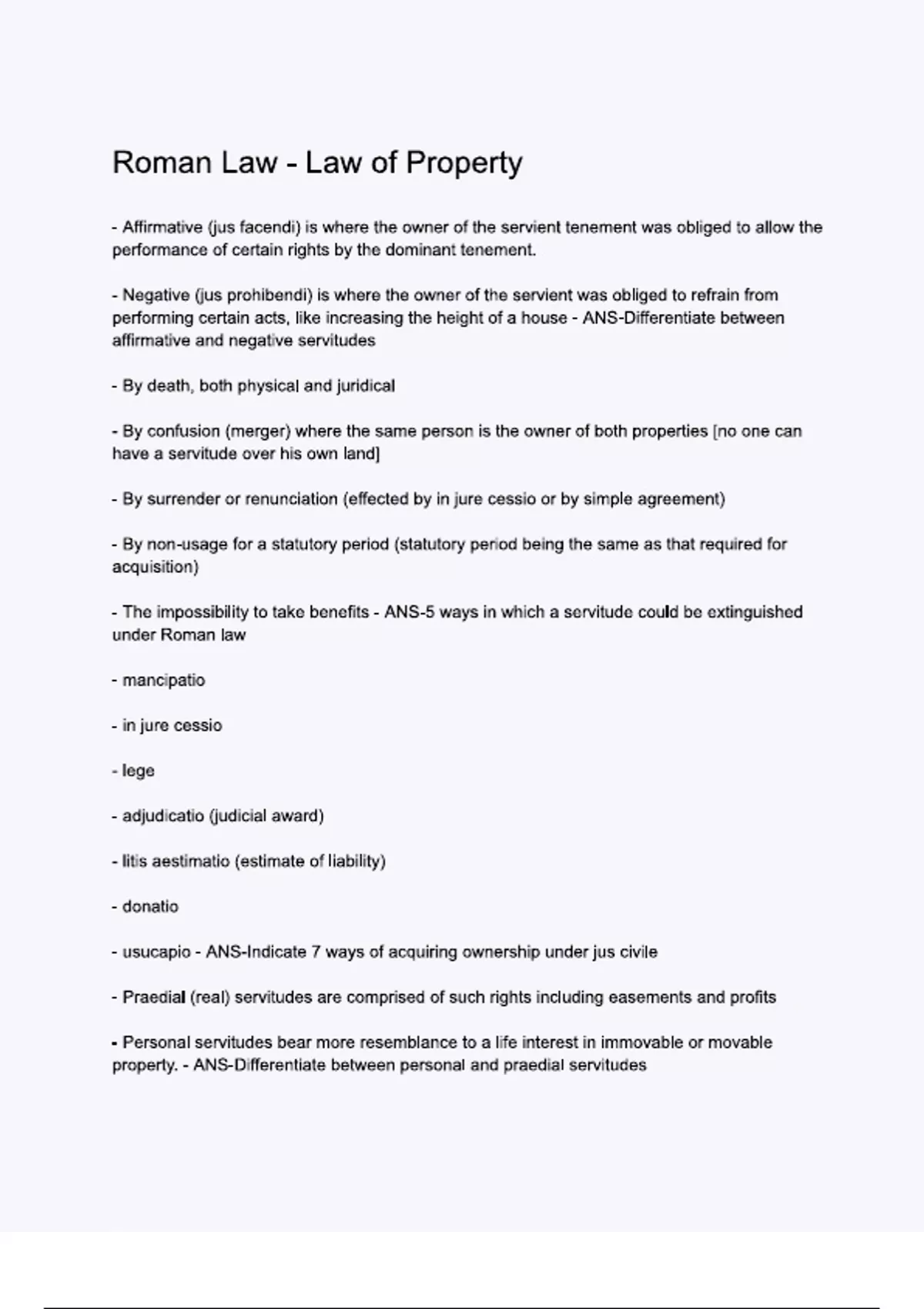 Roman Law - Law of Property Questions and Correct Answers (100% COMPLETE ANSWERS) ALREADY GRADED A+ | 100% satisfaction guarantee with complete solutions, (Latest update)